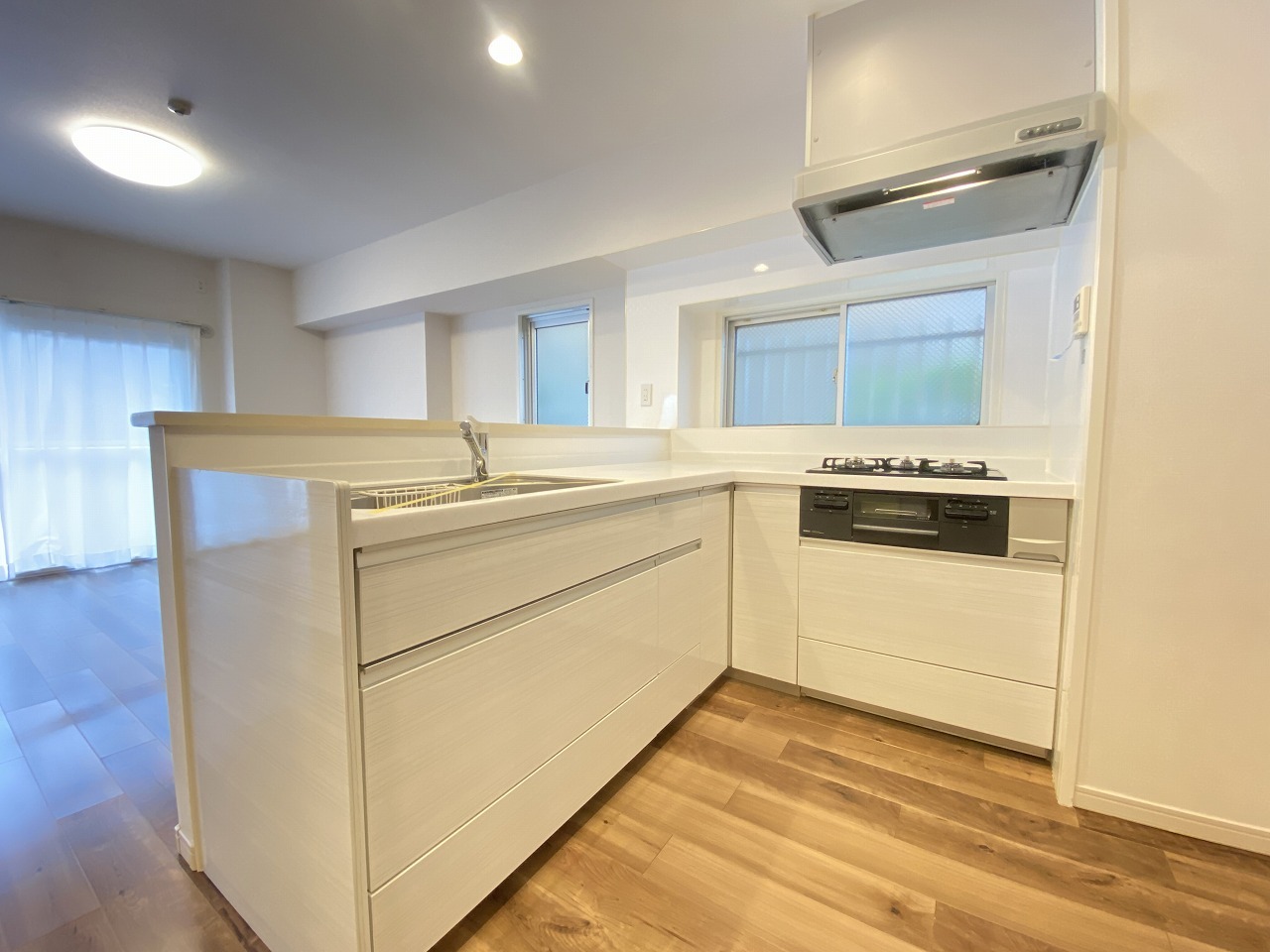 キッチン、床材、クロスが新品に交換済み。中古ながらも築年数を感じさせません。