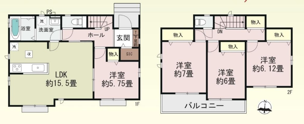 | 間取 | 4LDK+SIC (LDK15.5帖、洋室5.75帖、洋室7帖、洋室6.12帖、洋室6帖) | ||