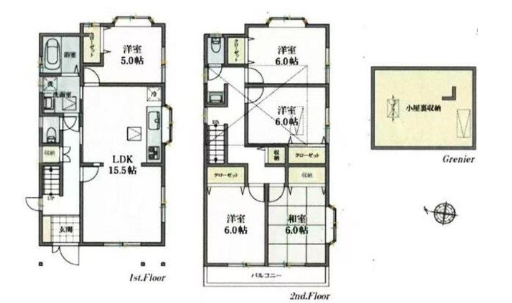 | 間取 | 5LDK (LDK15.5帖、洋室5.0帖、洋室6.0帖、洋室6.0帖、洋室6.0帖、和室6.0帖) | ||