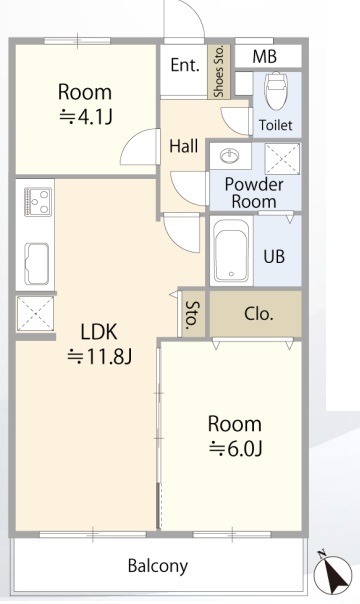 | 間取 | 2LDK (LDK11.8帖) | ||
