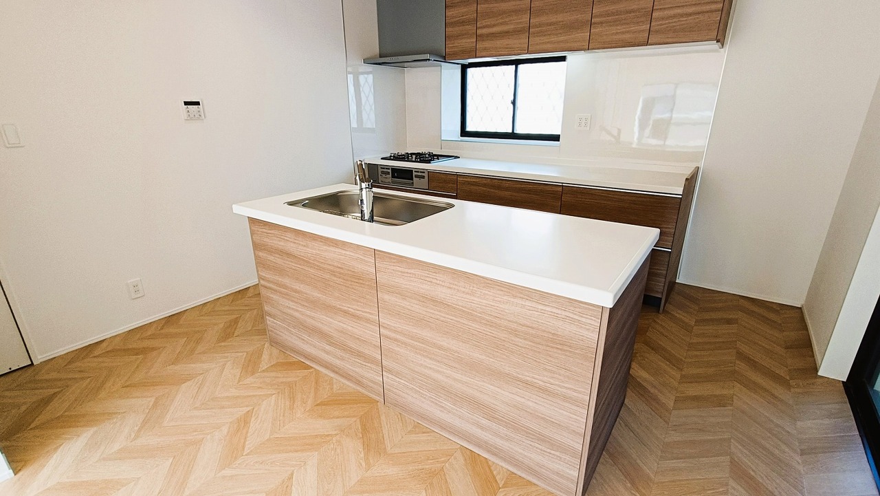 照り返しが眩しいシンク付きのキッチンで、楽しくお料理しませんか。
