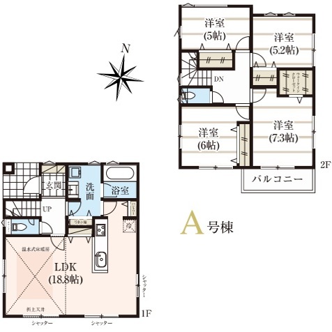 | 間取 | 4LDK (LDK18.8帖、洋室7.3帖、洋室6帖、洋室5.2帖、洋室5帖) | ||