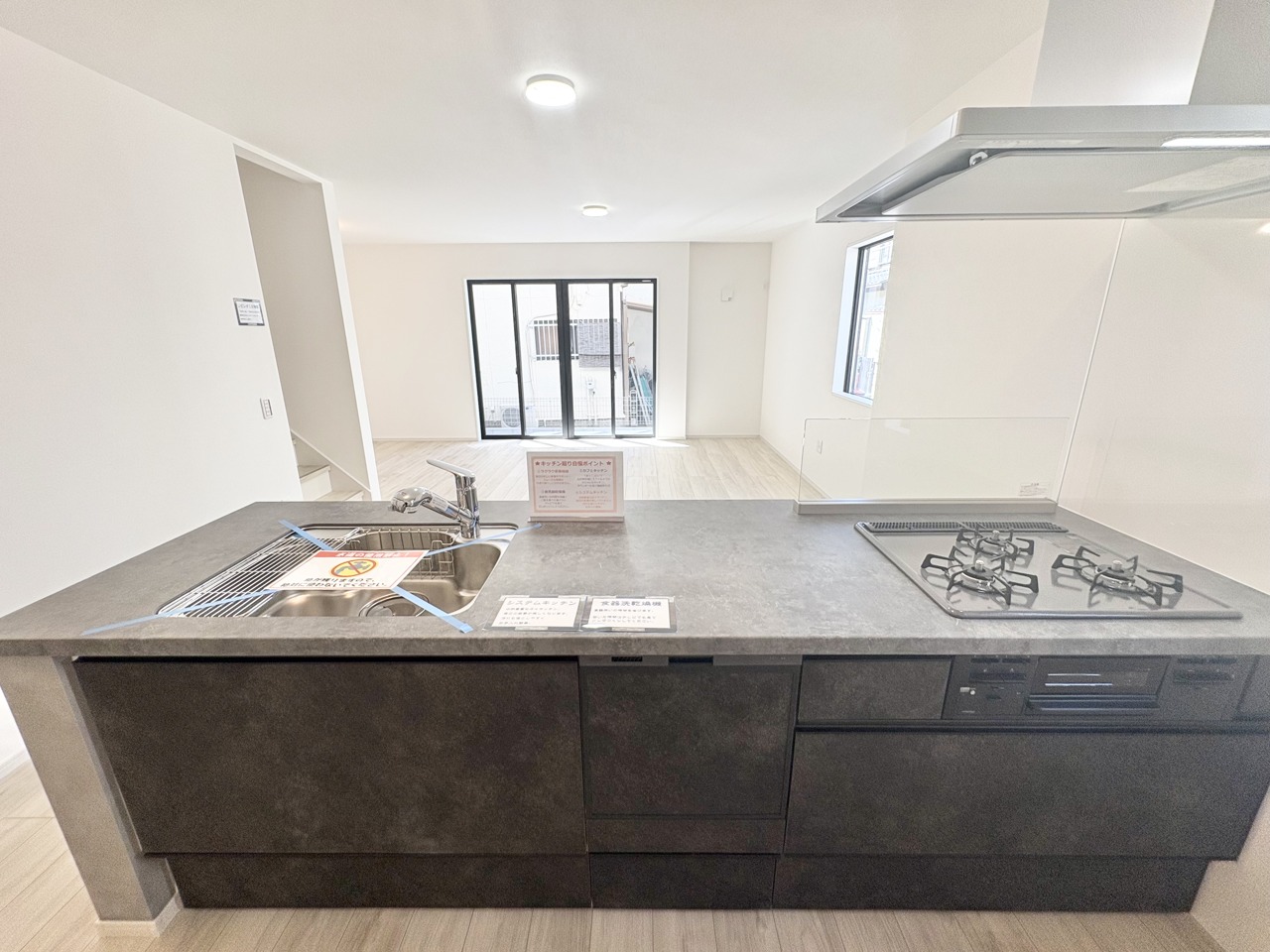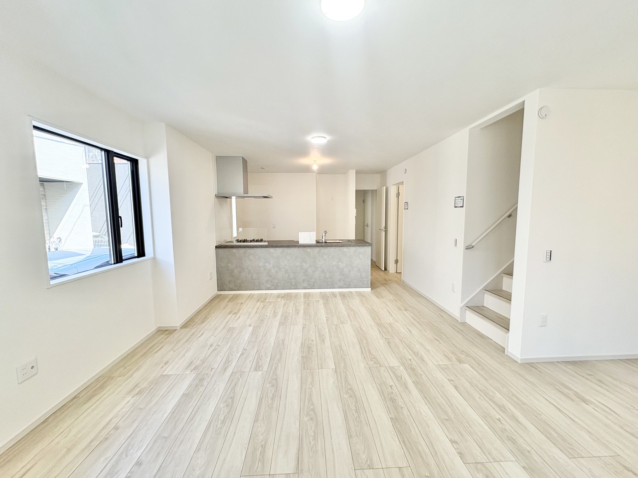 - 東武スカイツリーライン「北越谷」駅徒歩18分、ZEH水準の省エネ性能を備えた新築4LDK住宅。約16.3帖のLDKは家族がゆったり過ごせる開放的な空間で、キッチンからリビング・ダイニングを見渡せる安心設計です。ウォークインクローゼットなど収納も豊富で、住まいをすっきり保てます。間口約13mのゆとりある敷地で駐車も快適。小学校徒歩2分とお子様の通学も安心の立地です。周辺には生活施設も整い、子育て世帯にもおすすめの一邸です。