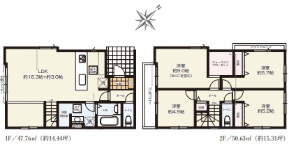 | 間取 | 4SLDK (LDK19.3帖、洋室9帖、洋室5.7帖、洋室5.2帖、洋室4.5帖) | ||