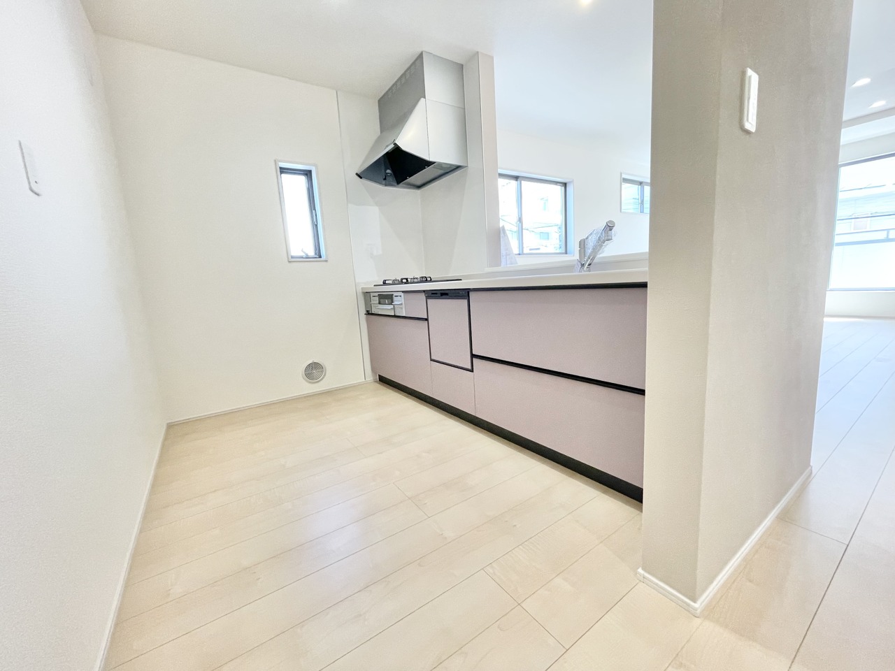 明るく開放的な空間に、機能的なキッチンが調和します。