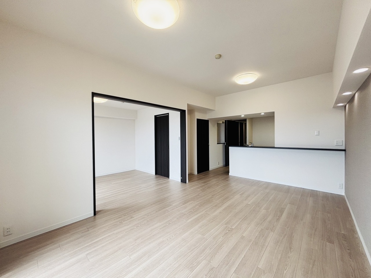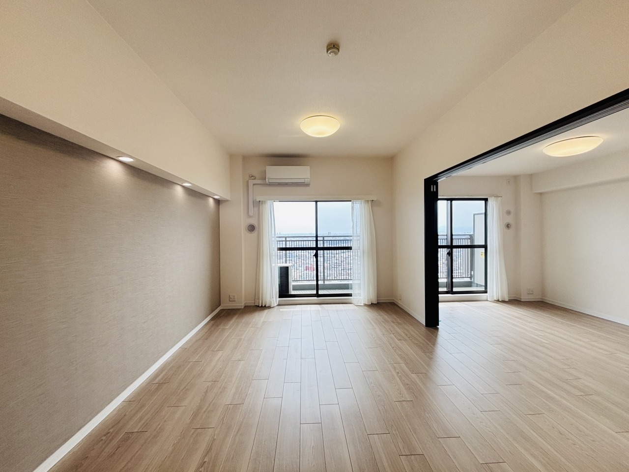 大きな開口部から明るい光が差し込む、日中の室内の明るさがこの部屋の魅力です。