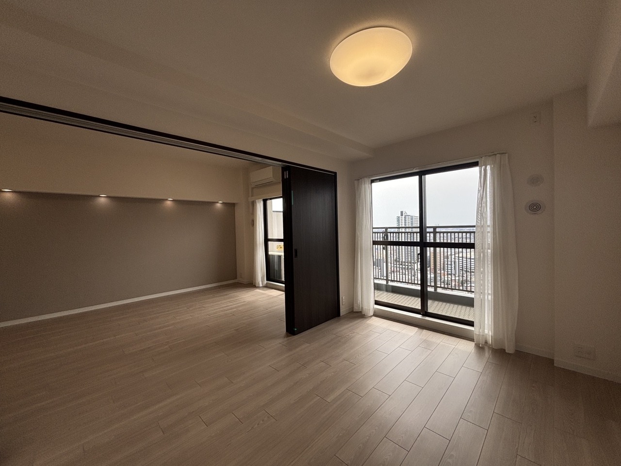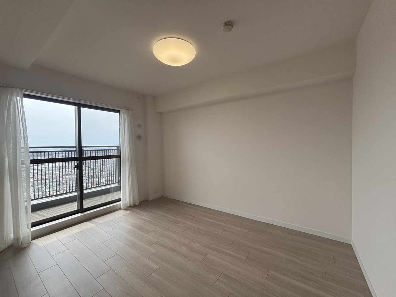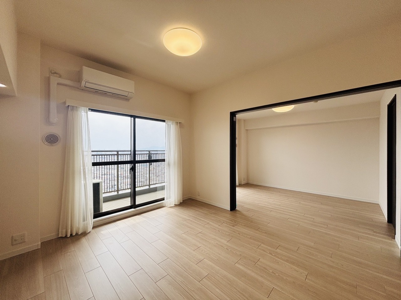 バルコニーに面した洋室。開口部からは優しい陽光が差し込み心地よい風が通り抜けます。