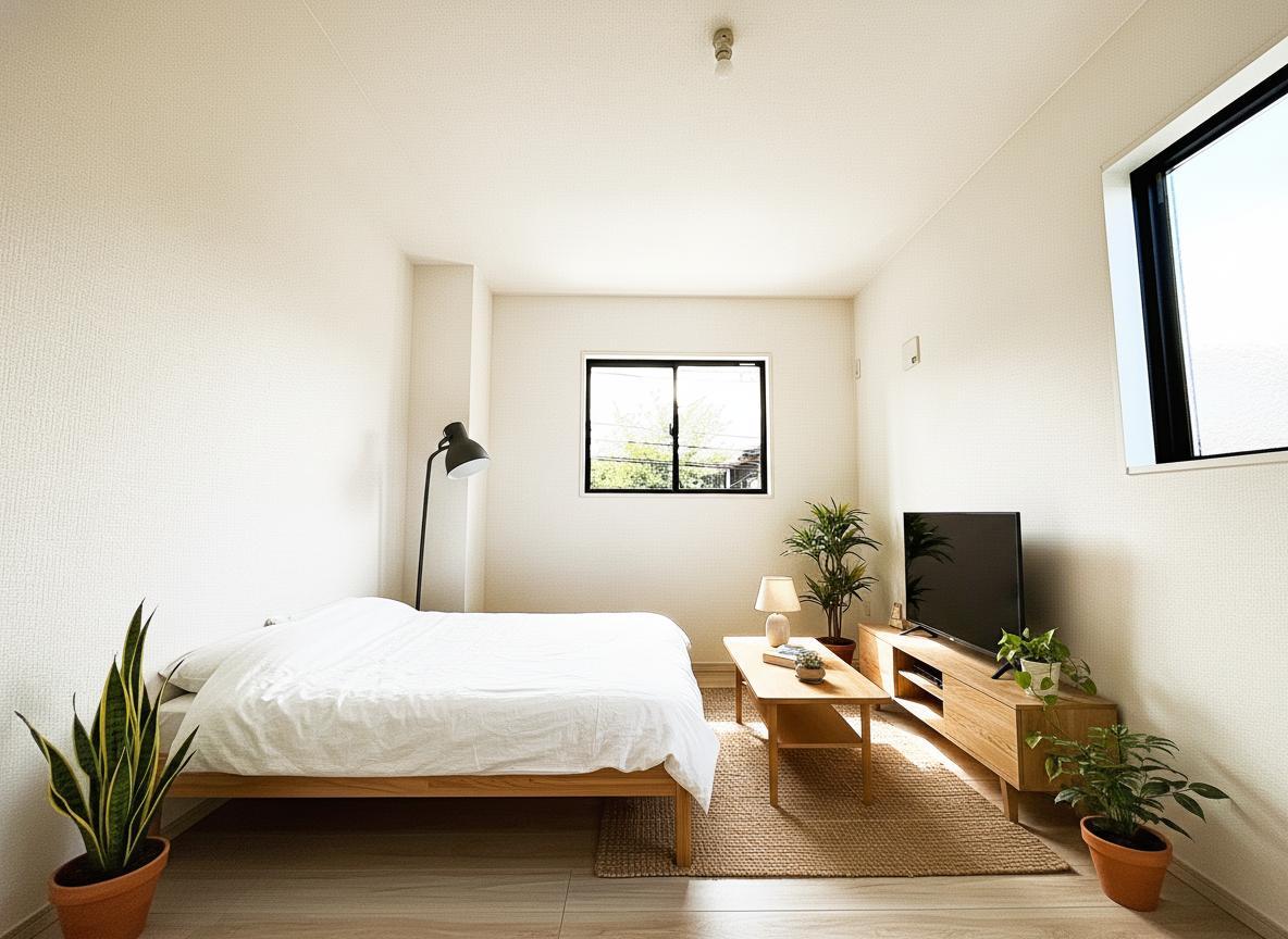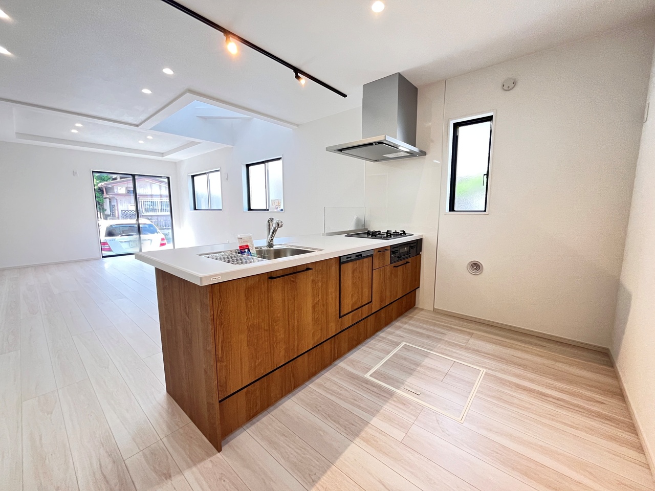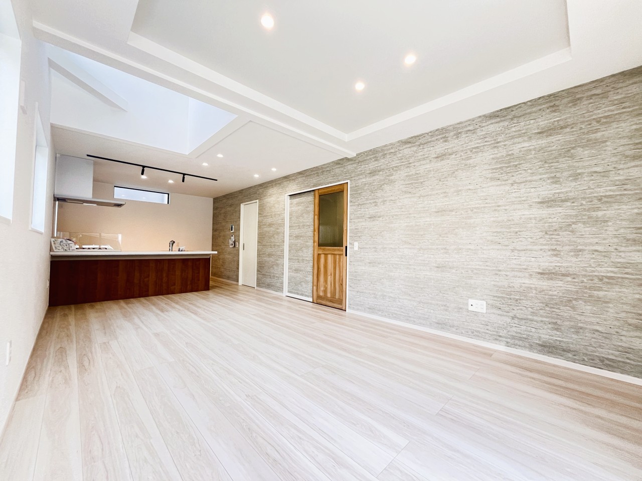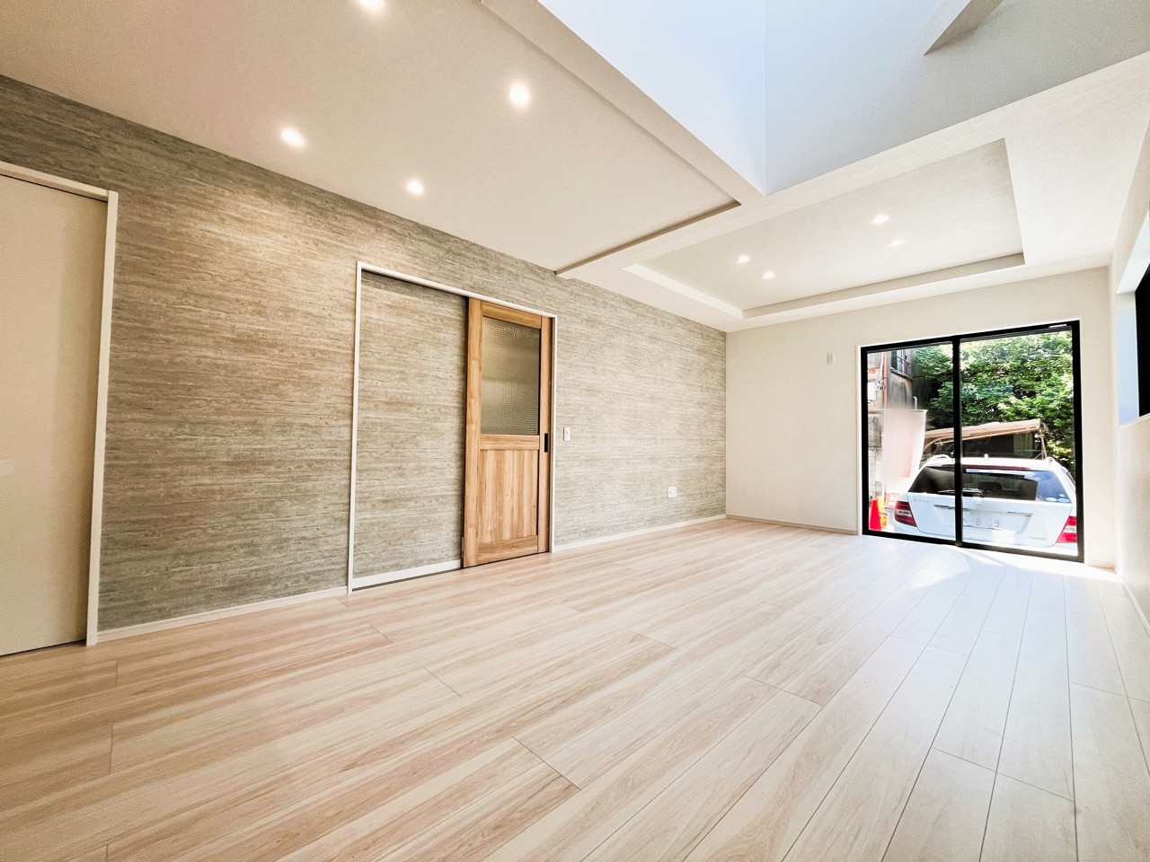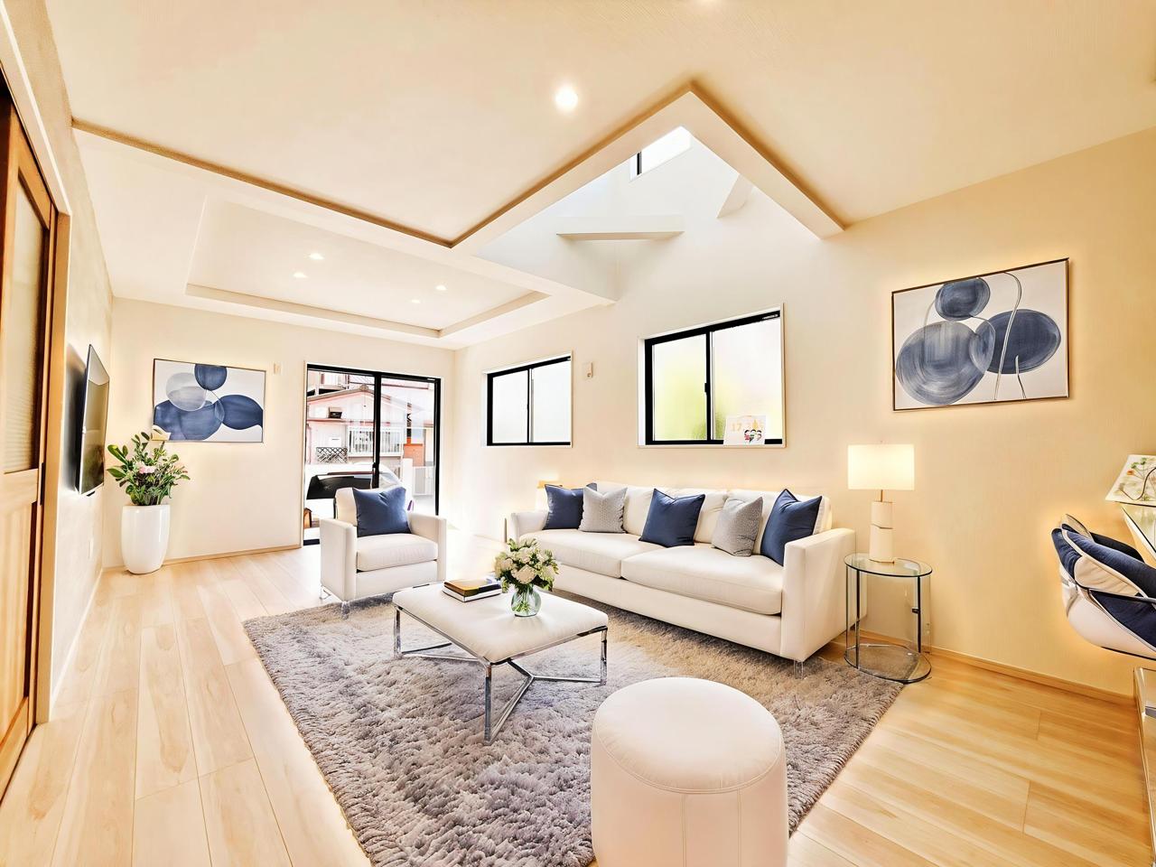 新建の空気感あふれる空間は、柔らかな光に満たされ、広々とした床には木目の風合いが温かく、開放的な窓からは心地よい風が吹き抜けるような開放感を覚えます
