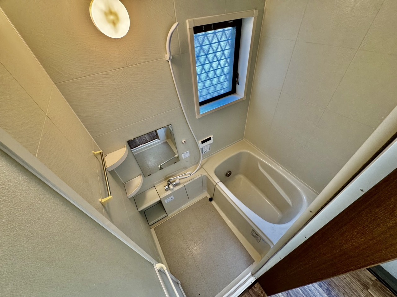 リフォーム工事前。浴室は湿気がたまりやすく、換気扇だけでは心配。。。窓をあければお風呂がカラっと乾きます。