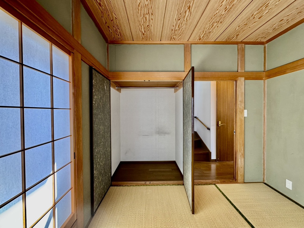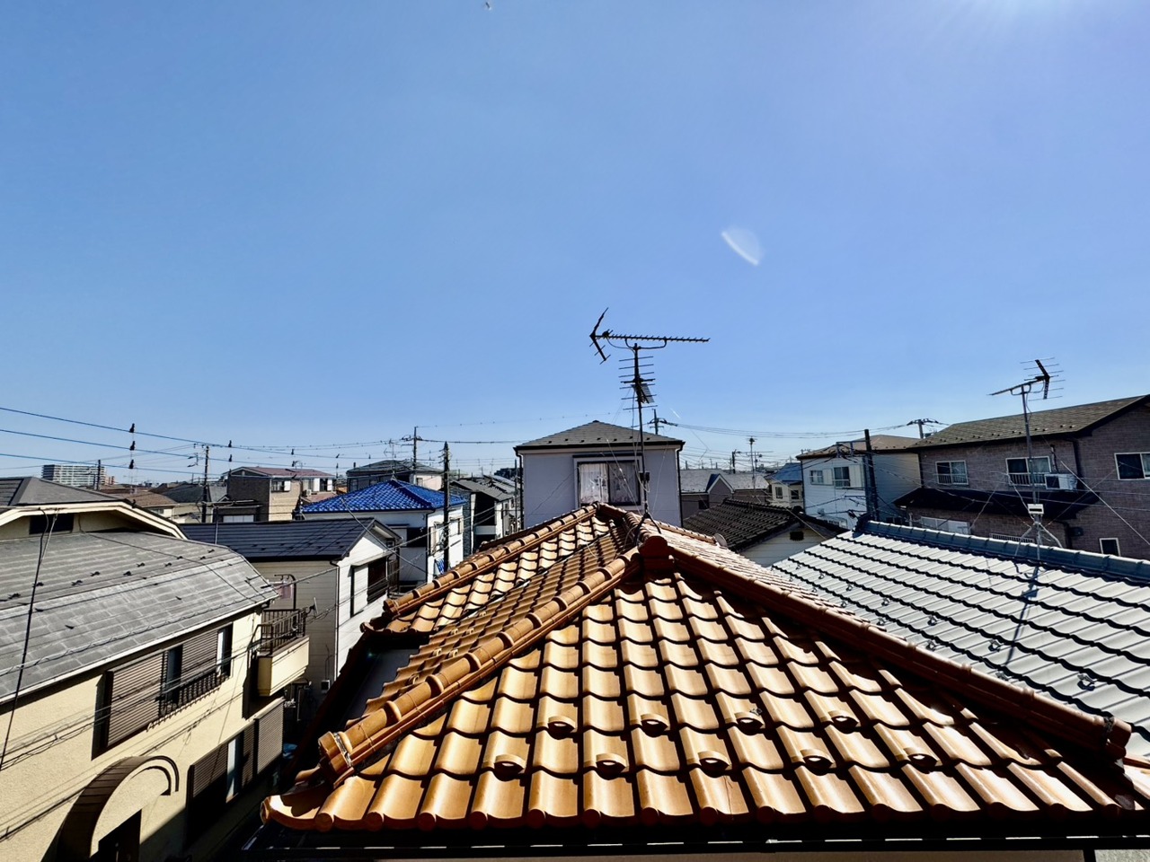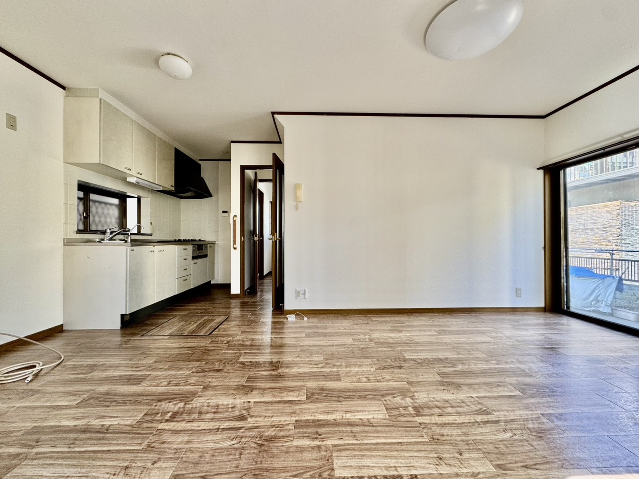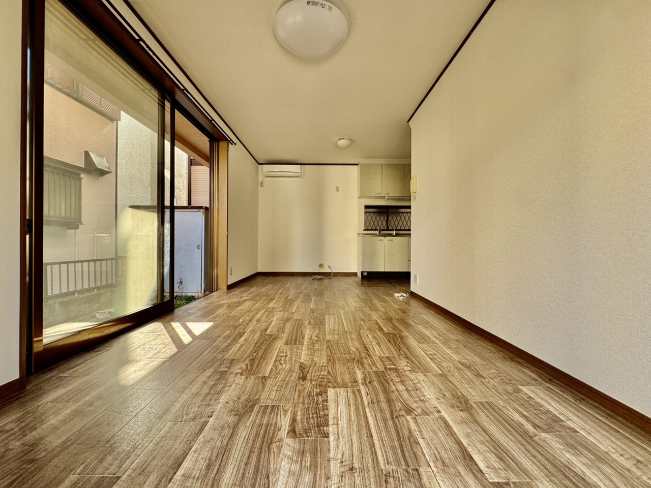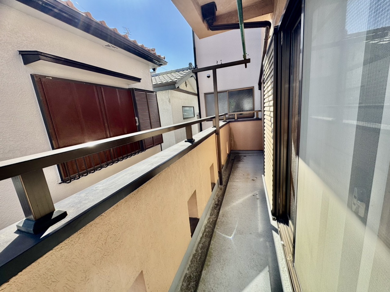 リフォーム工事前。住宅街の2階南向きのお部屋です。日当たりはご覧のとおり。