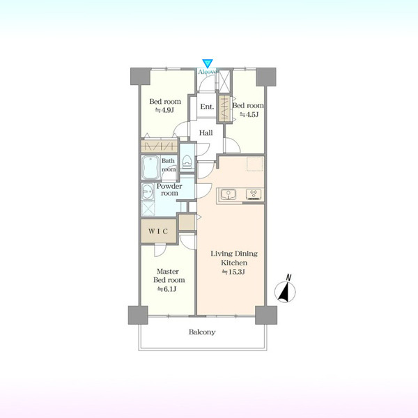 | 間取 | 3LDK (LDK15.3帖、洋室6.1帖、洋室4.9帖、洋室4.5帖) | ||