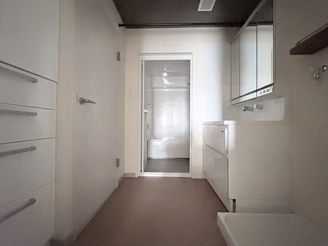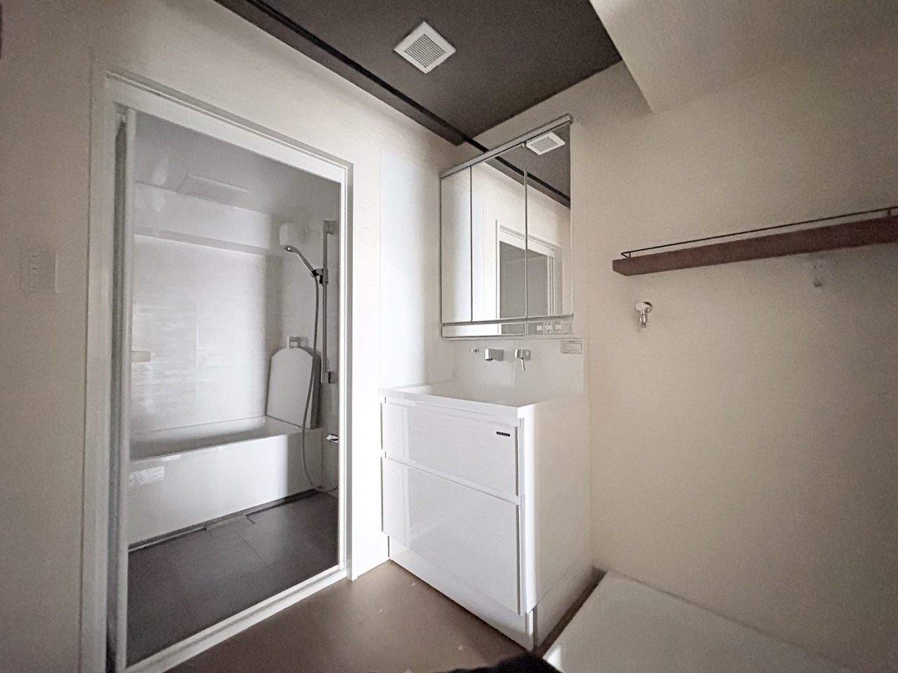 清潔感あふれる白で統一された、心地よい水まわり空間。
