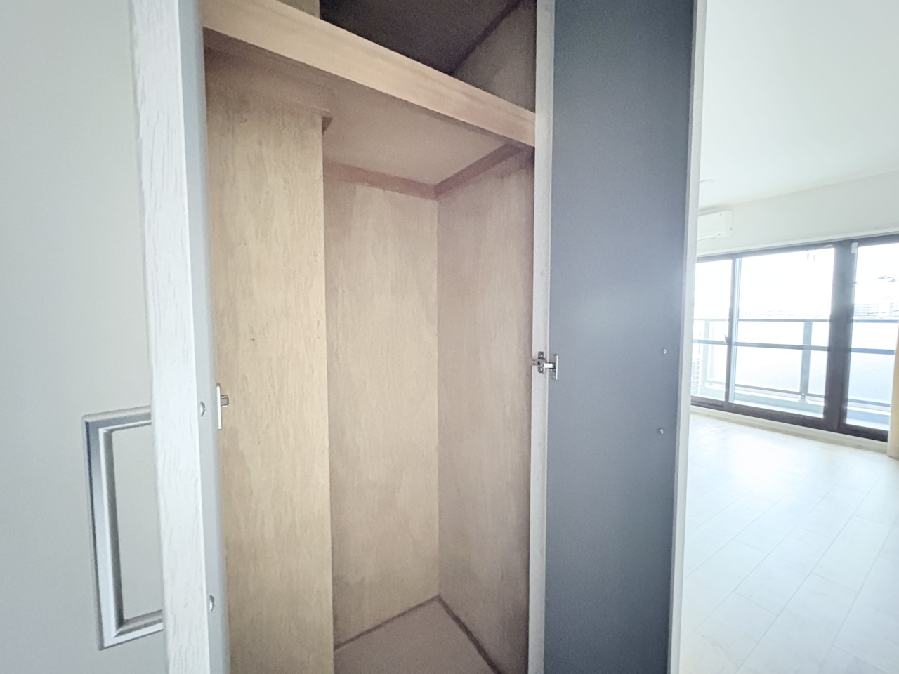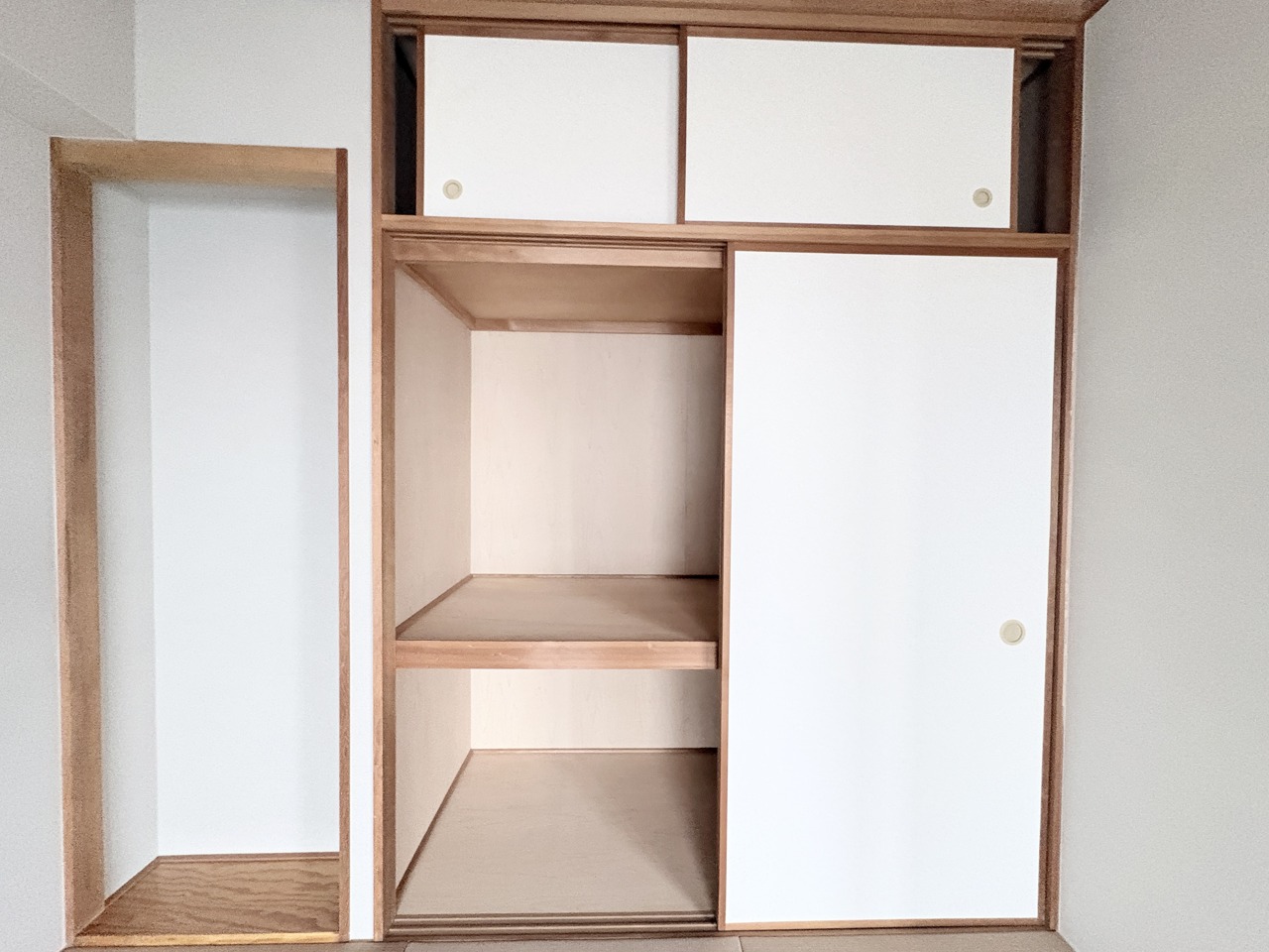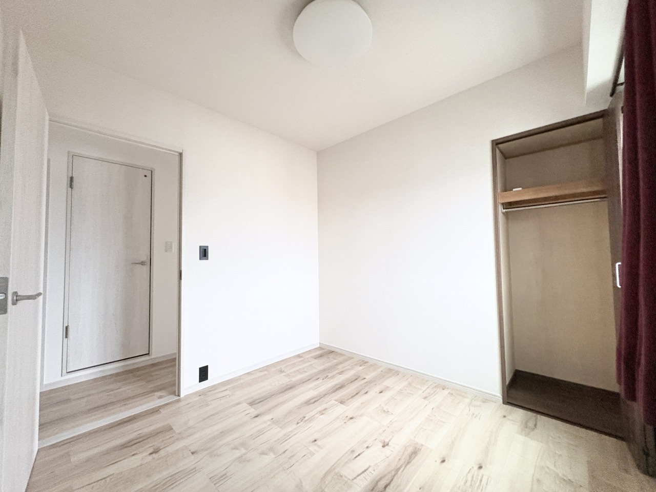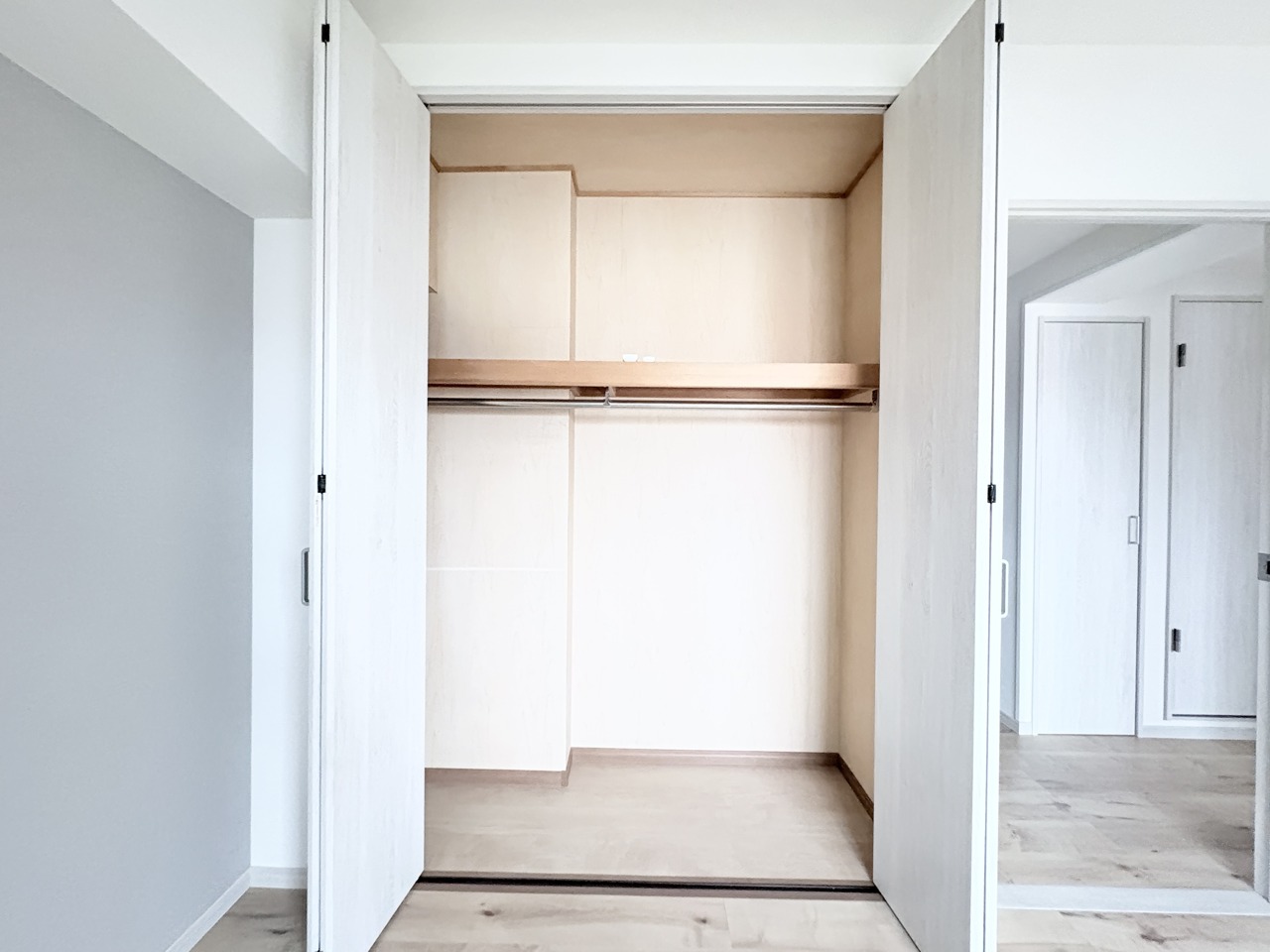 明るい空間と、奥行きを感じさせる収納スペースが調和する部屋。