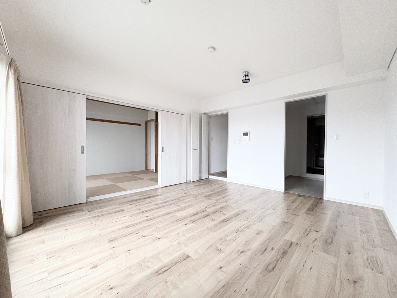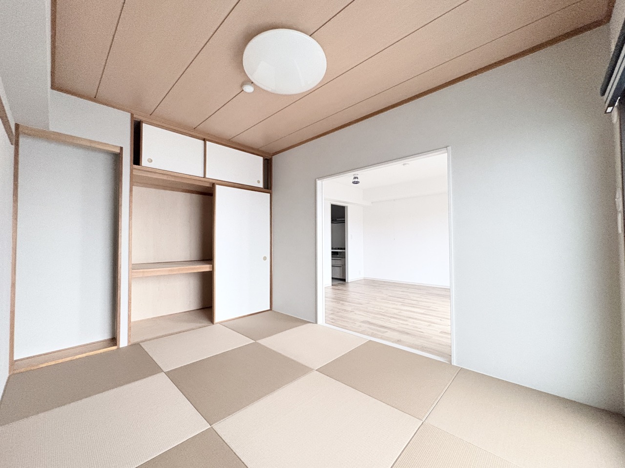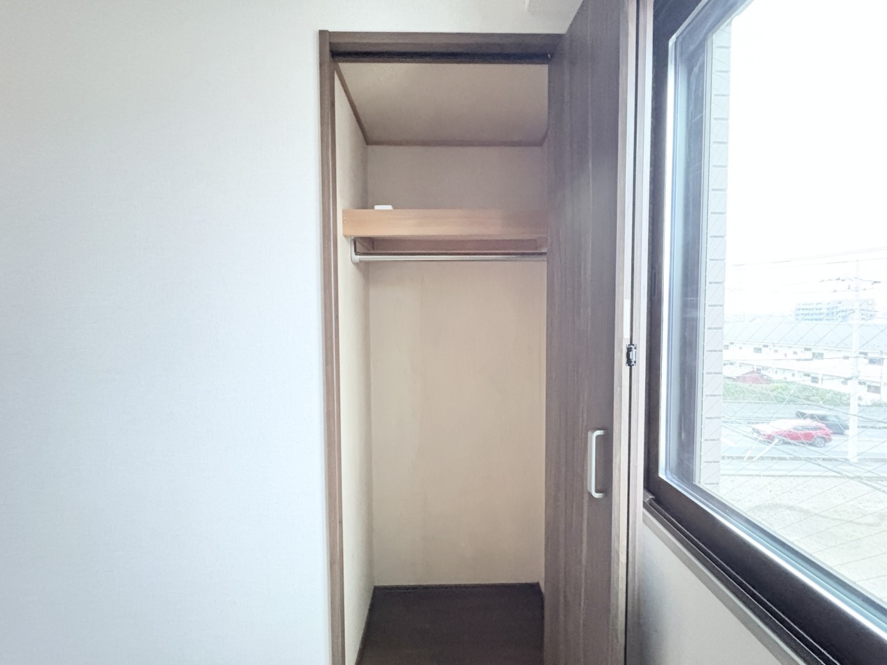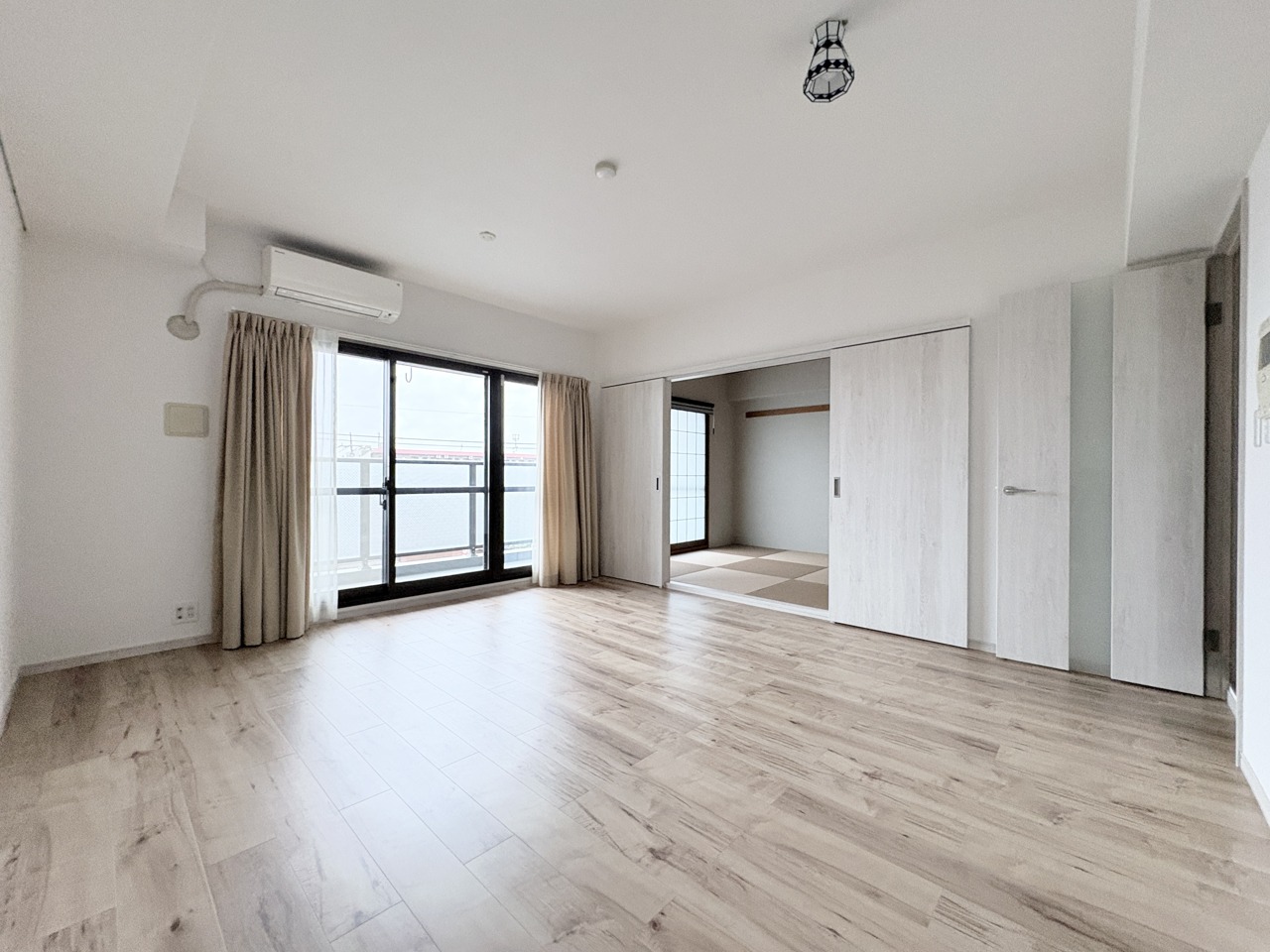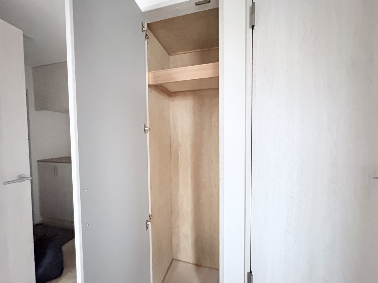 明るい空間と、奥行きを感じさせる収納スペースが調和する部屋。