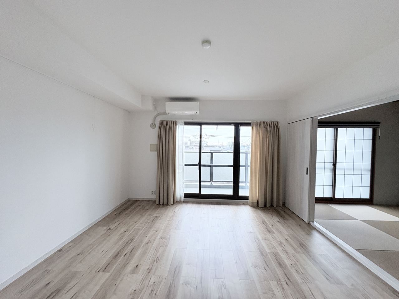 広々とした空間に、温かみのある木目調の床が心地よい調和を生み出しています。