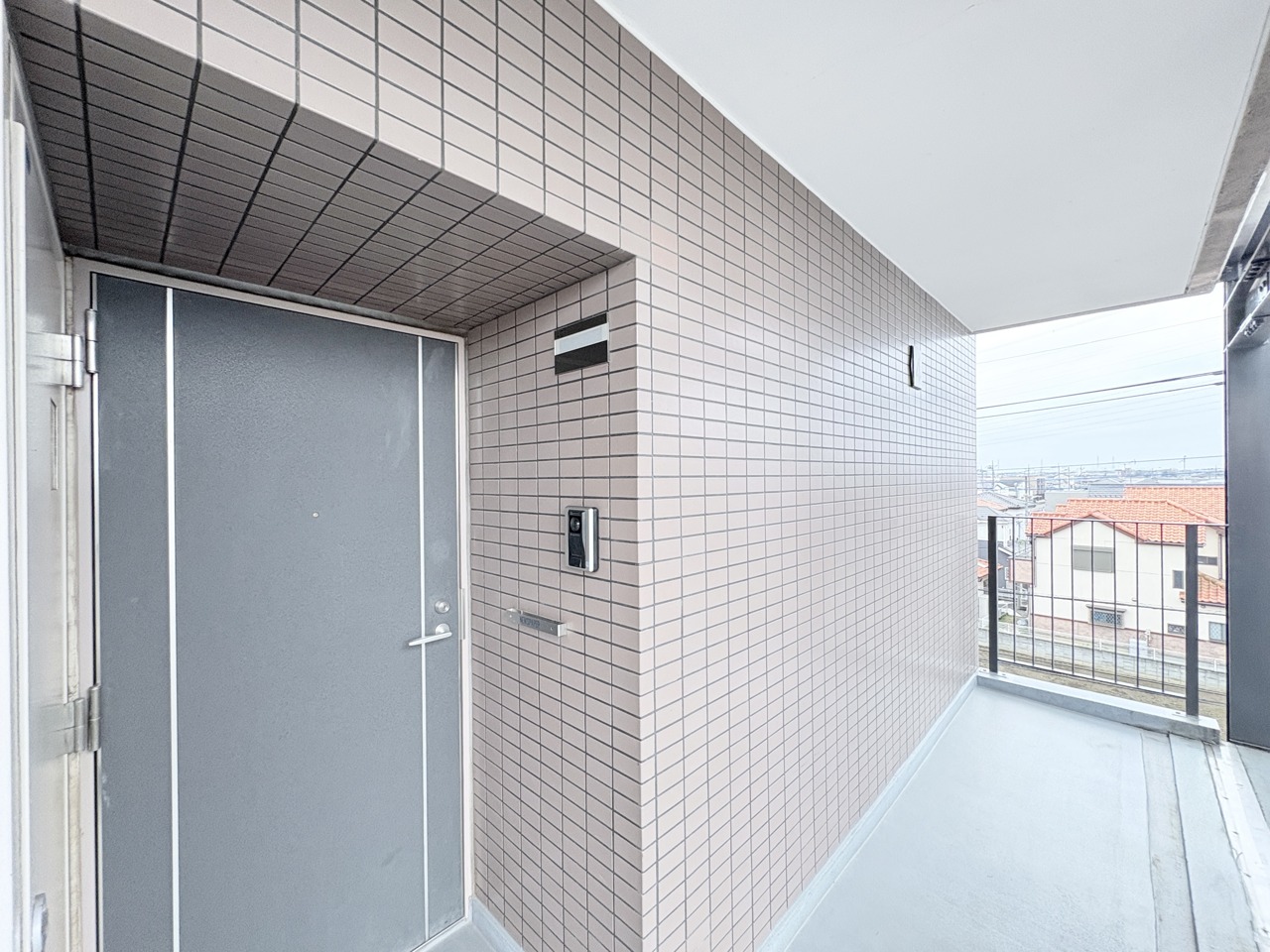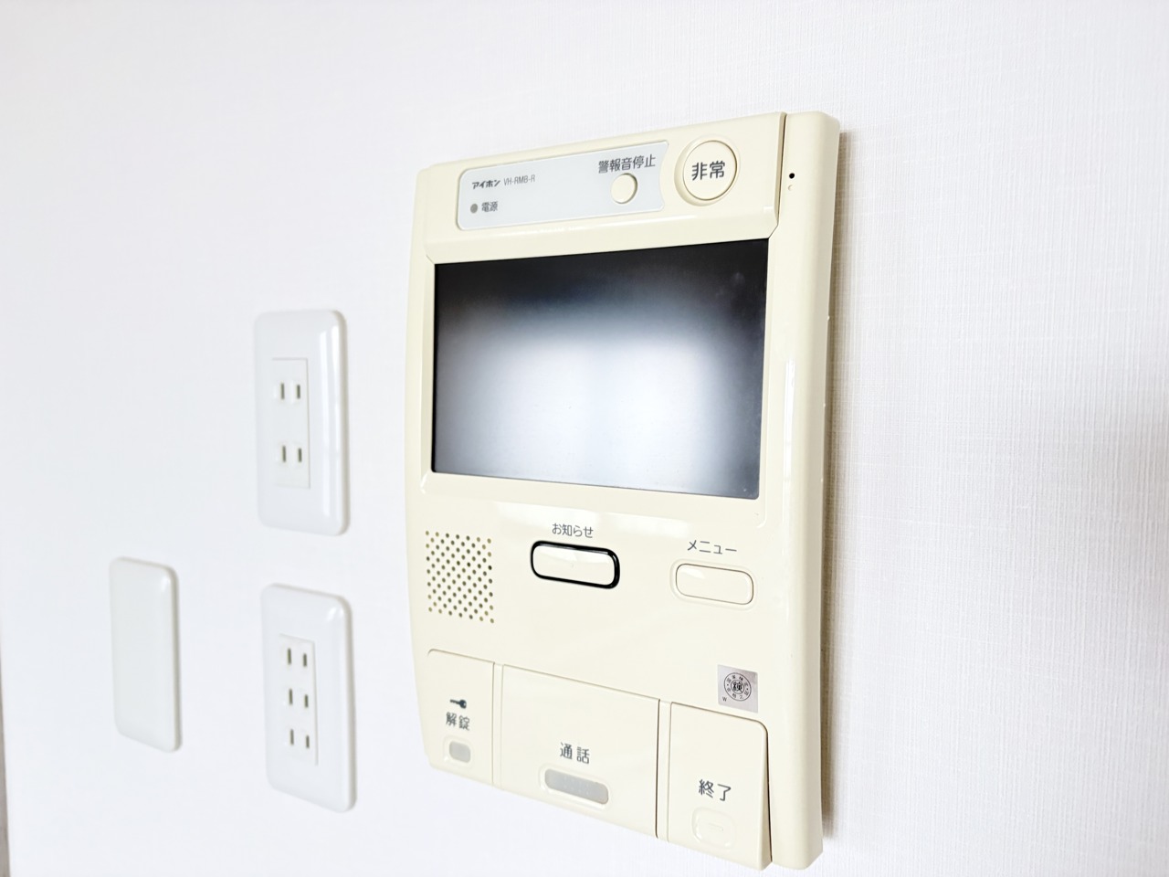 清潔感のある壁に、機能的なインターホンが馴染む空間