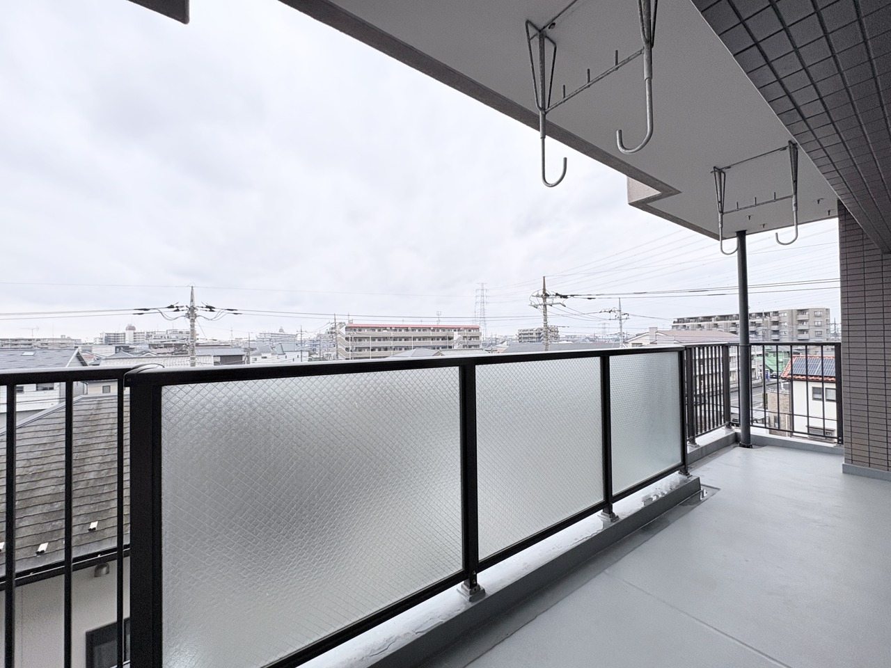 広がる街並みを眺める、ゆとりのあるバルコニー空間。