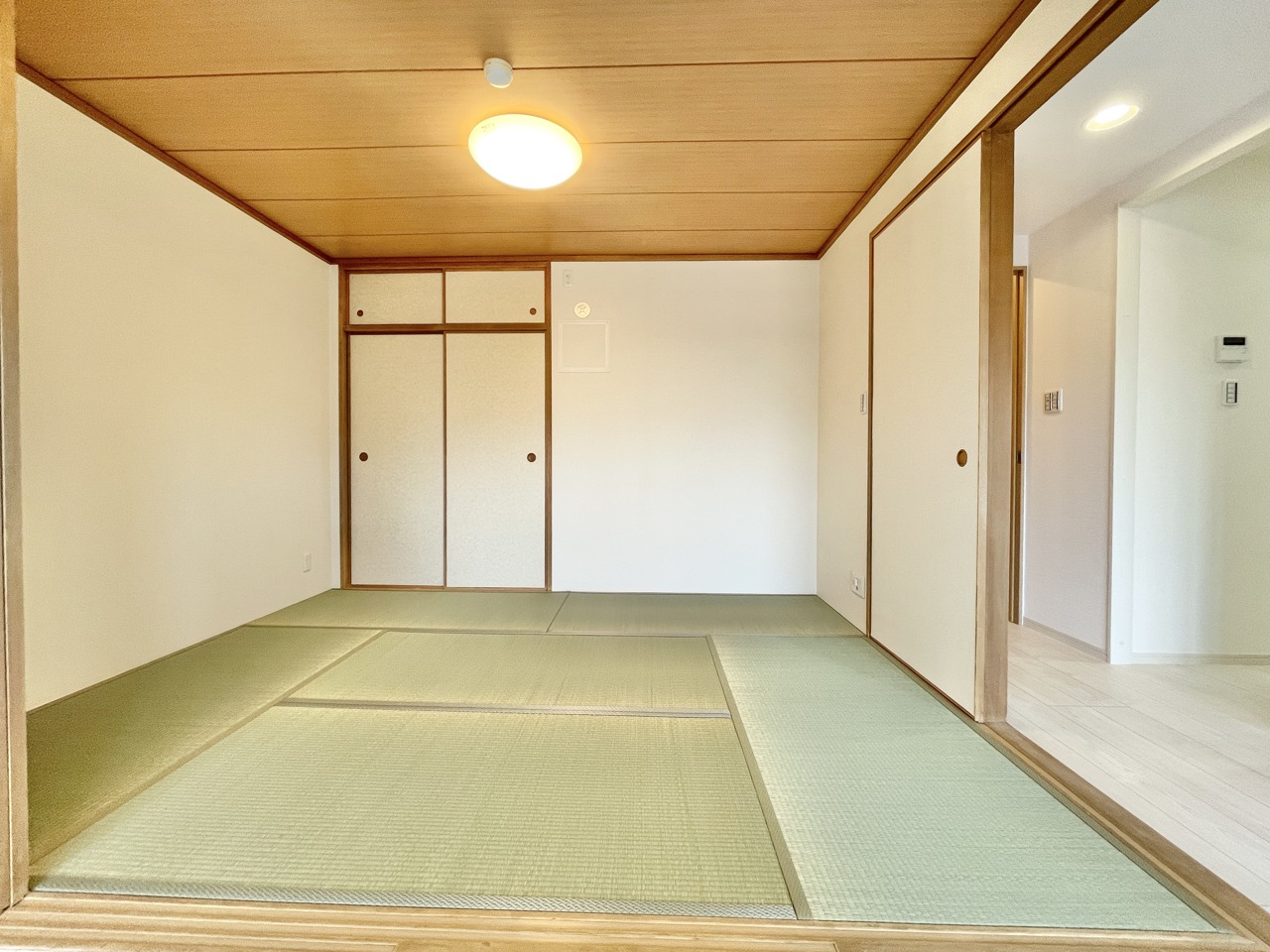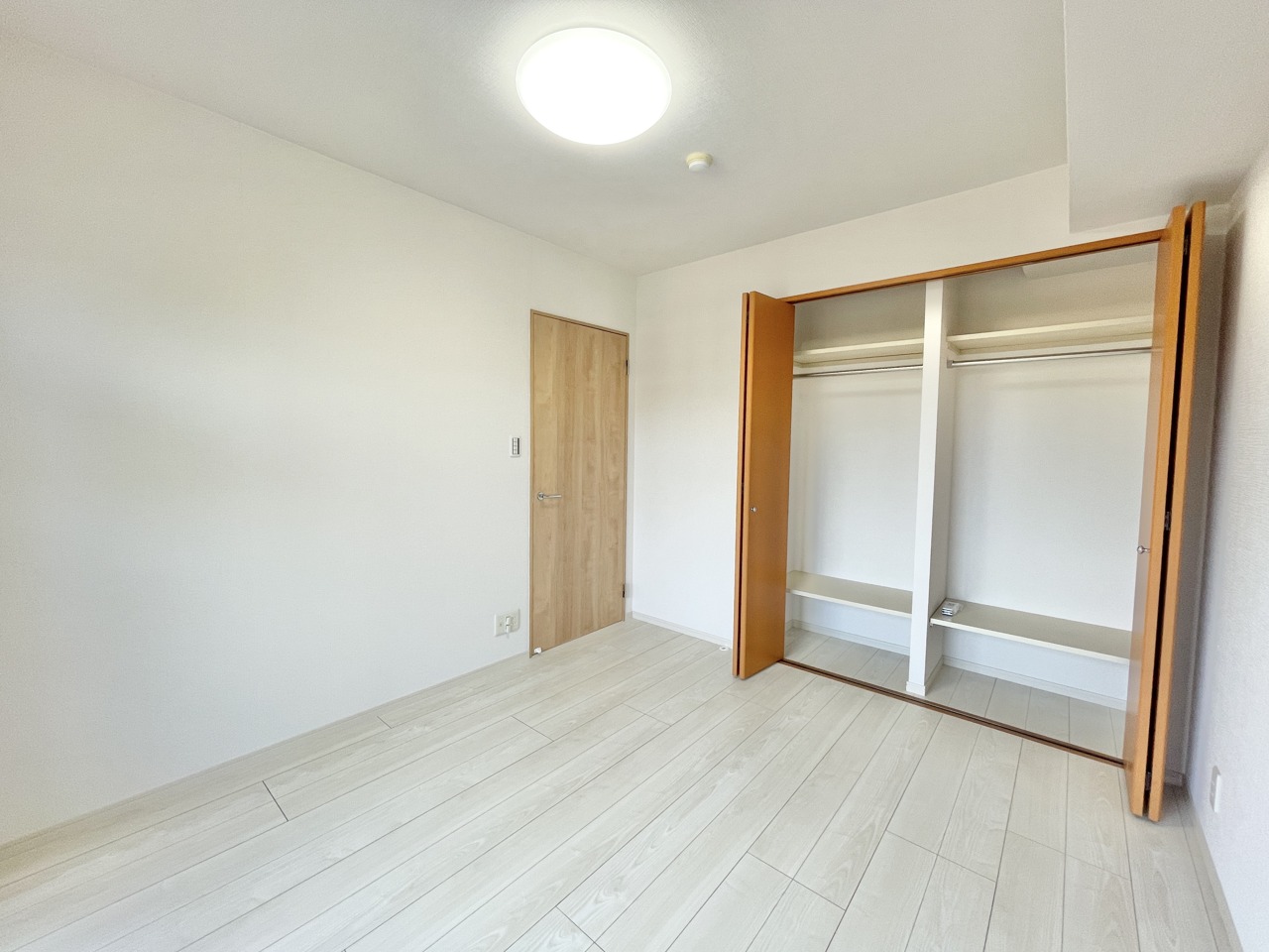 洋室は子供部屋にもちょうどいいサイズ感。 温もりを感じる木目調の床と、すっきりと整えられた空間が広がっております。