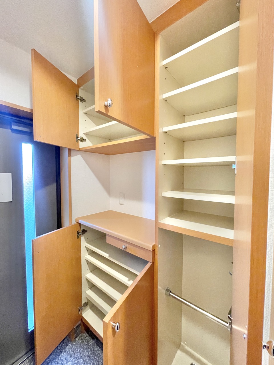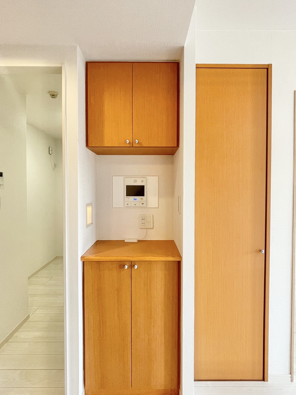 ニッチにはインターフォンと収納スペースがついております。