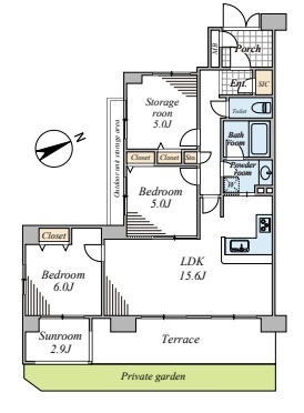 | 間取 | 2SLDK + サンルーム2.9帖 (LDK15.6帖、洋室6.0帖、洋室5.0帖、S5.0帖) | ||