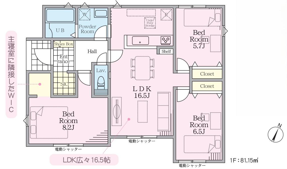 | 間取 | 3LDK+WIC、SIC (LDK16.5帖、洋室8.2帖、洋室6.5帖、洋室5.7帖) | ||