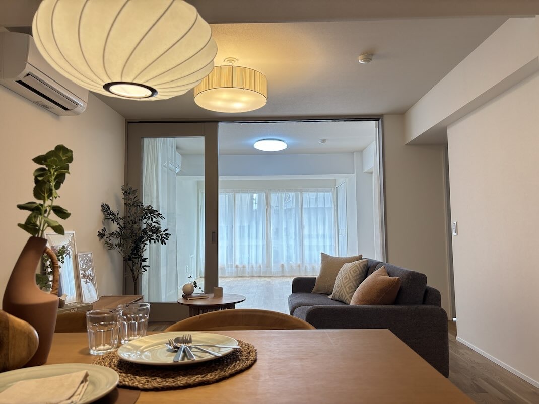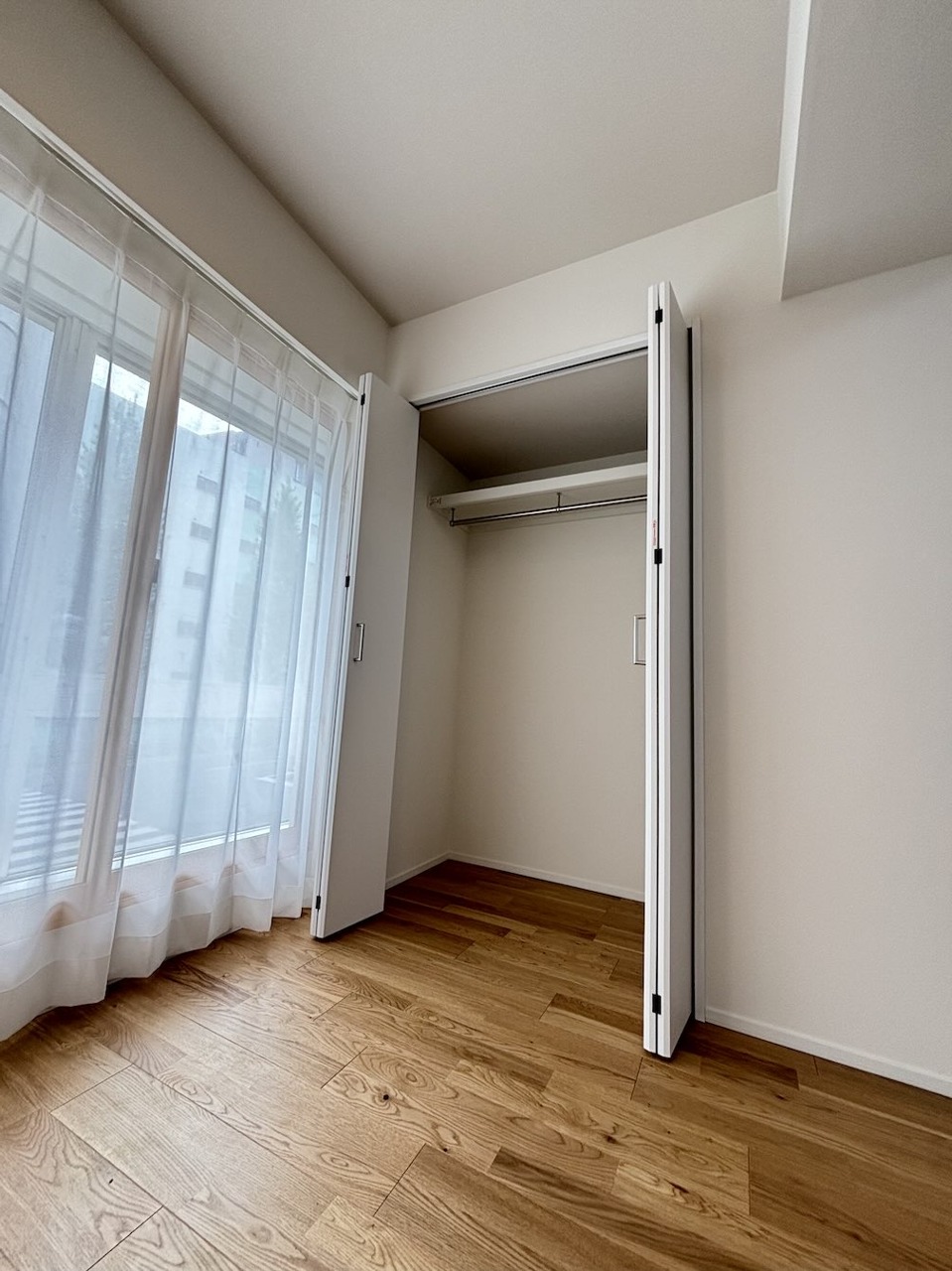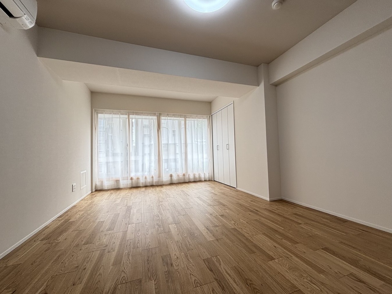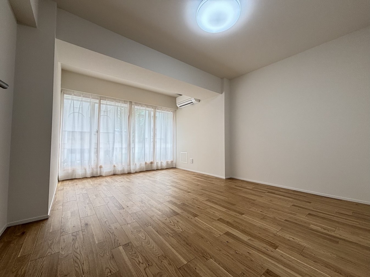 - 窓面が広く自然光が多く入るのが特徴的なお部屋、リビングまで自然光が届くよう洋室の連動間仕切りはガラス建具です。