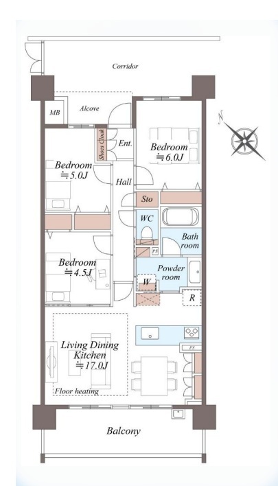 | 間取 | 3LDK (LDK17帖、洋室6帖、洋室5帖、洋室4.5帖) | ||