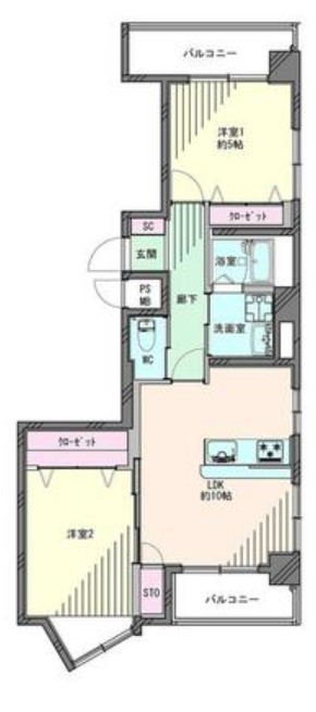 | 間取 | 2LDK (LDK10帖、洋室5.5帖、洋室5帖) | ||