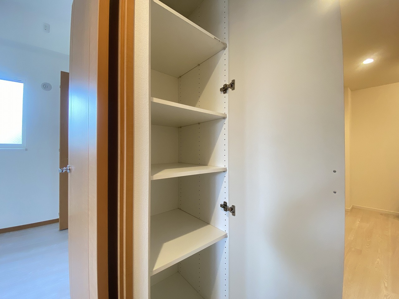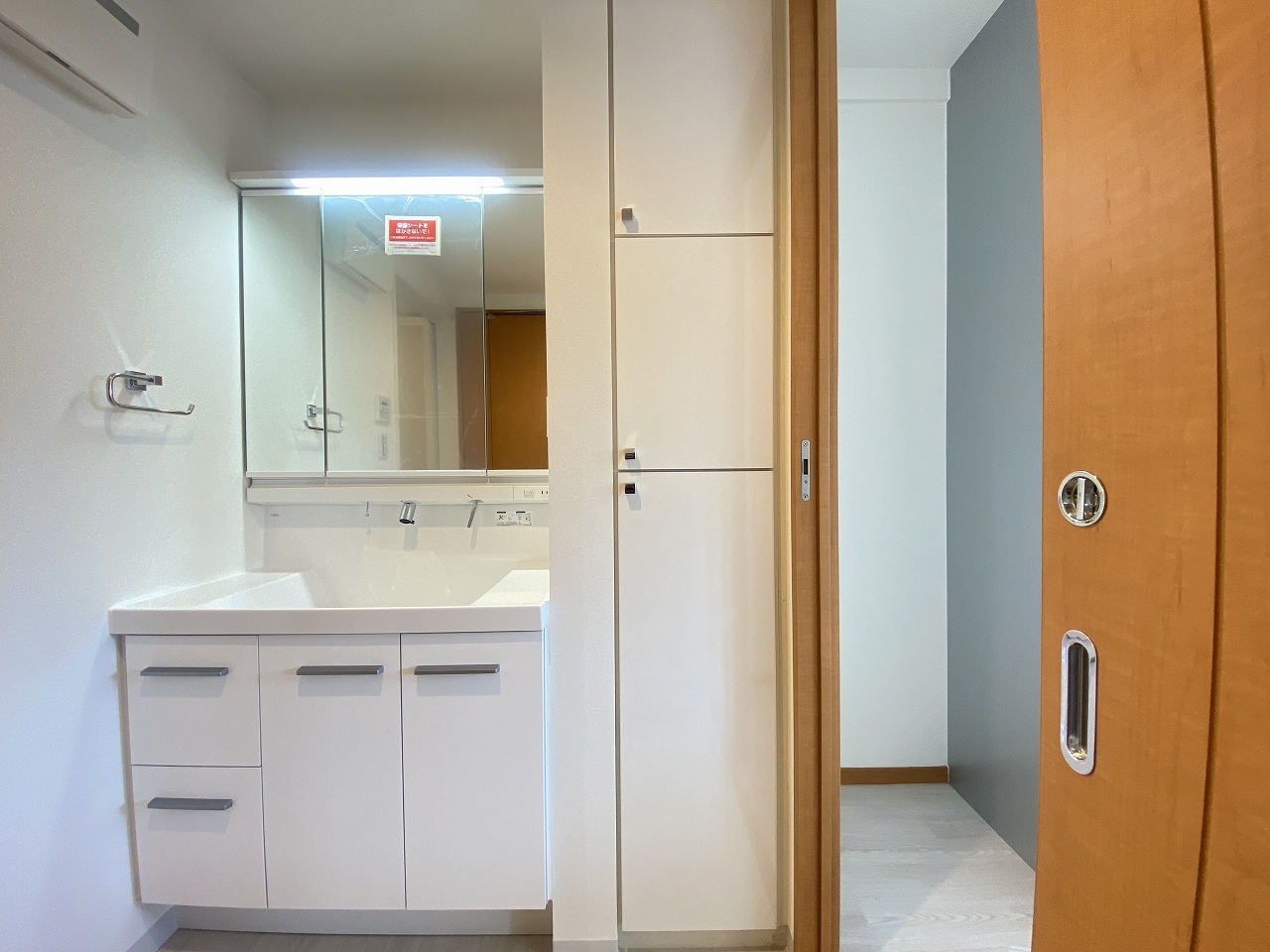 洗面室にはうれしいリネン収納があります。