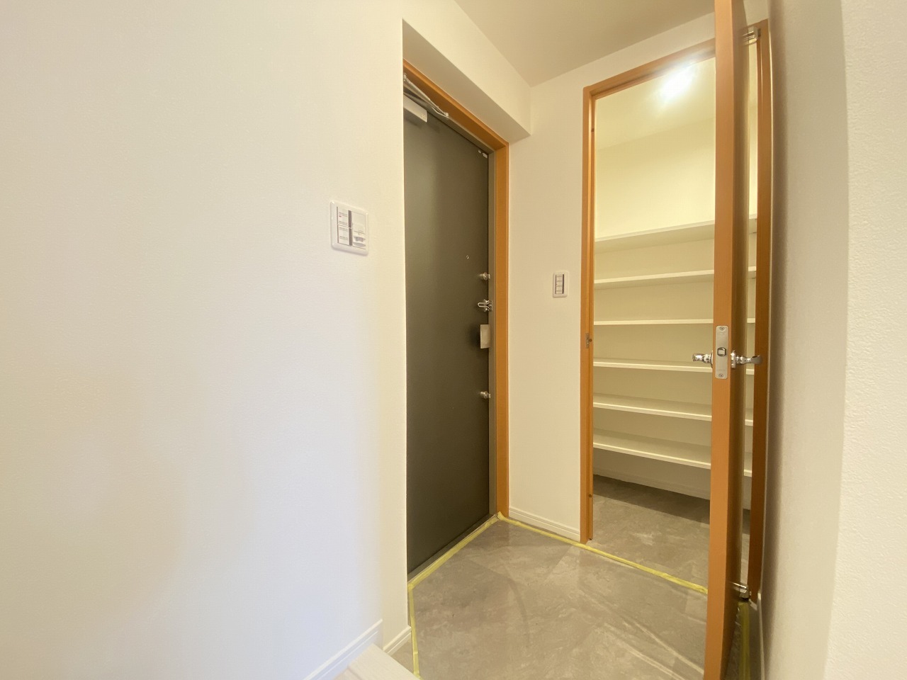 玄関横にシューズインクローク付き、雨具や三輪車を置いても余裕の広さ。