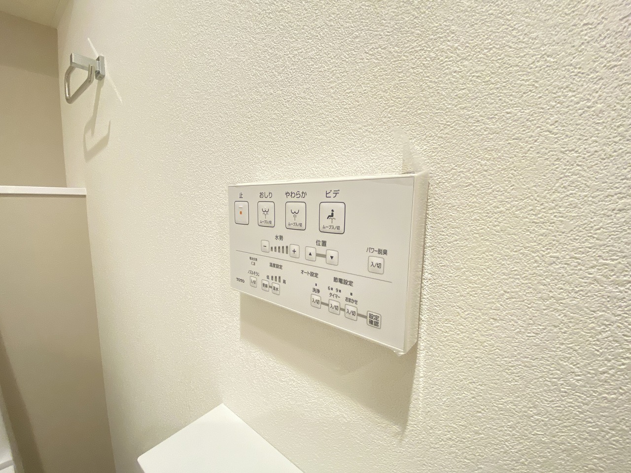 もちろんウォシュレット機能付き。憩いの場としてひそかに注目度の高いお手洗いにもご注目ください。