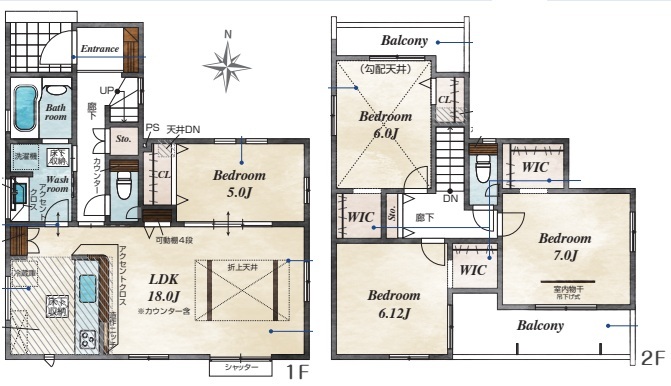 | 間取 | 4LDK (LDK18.0帖、洋室7.0帖、洋室6.12帖、洋室6.0帖、洋室5.0帖) | ||