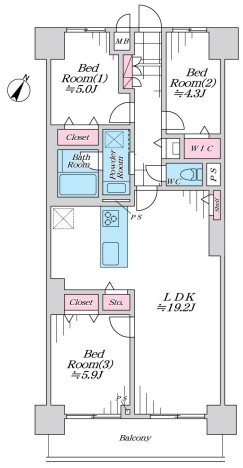 | 間取 | 3LDK (LDK19.2帖、洋室5.9帖、洋室5.0帖、洋室4.3帖) | ||