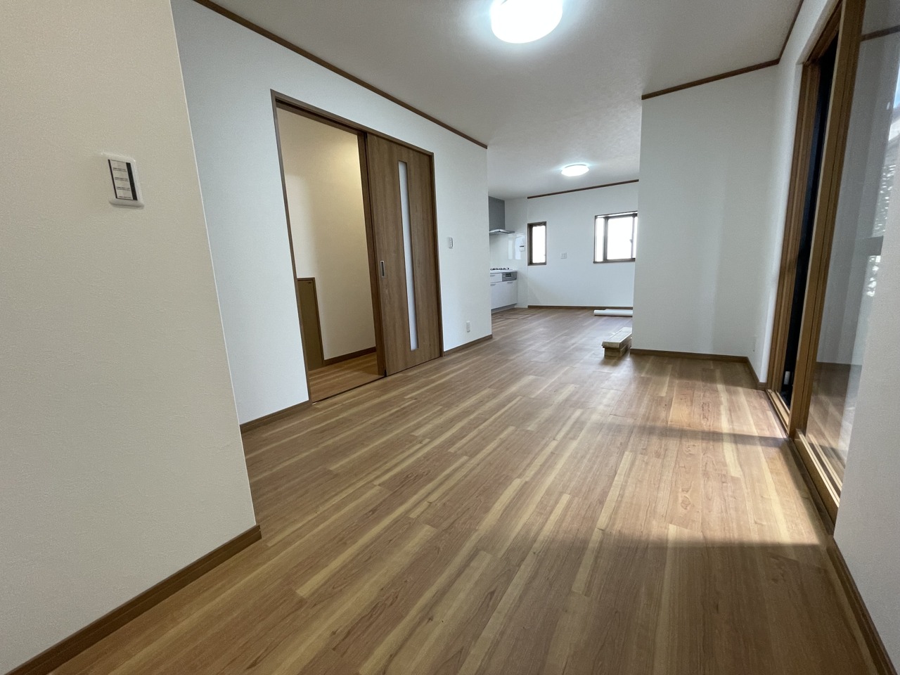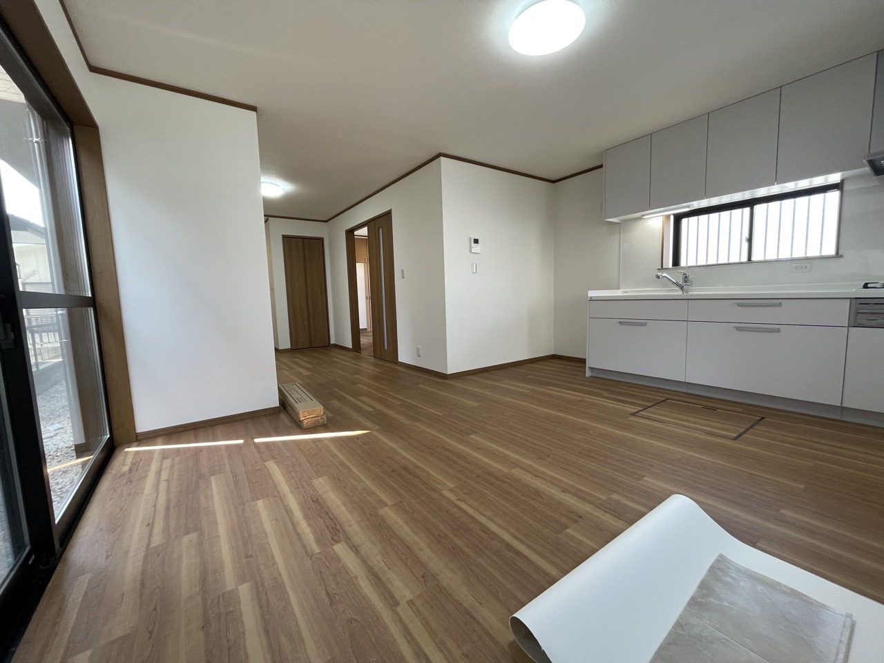 窓から差し込む光が床に広がり、心地よい空間を演出します。