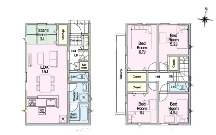 | 間取 | 4LDK + 畳コーナー3帖 (LDK15帖、洋室6.7帖、洋室5.2帖、洋室5帖、洋室4.5帖) | ||
