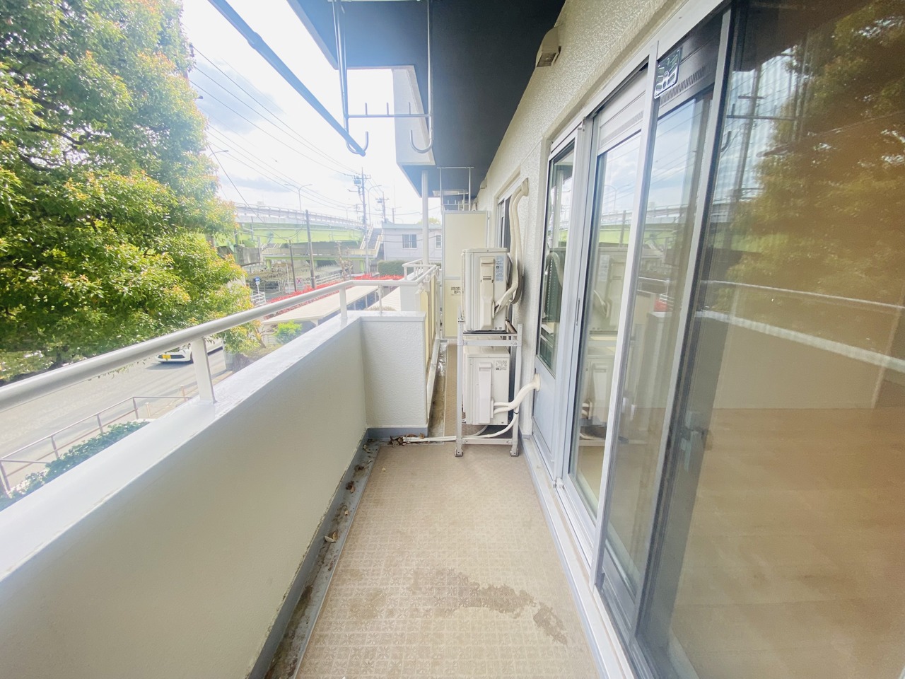 陽ざしが差込む明るいバルコニー。奥行きのあるバルコニーはお洗濯時に助かります。