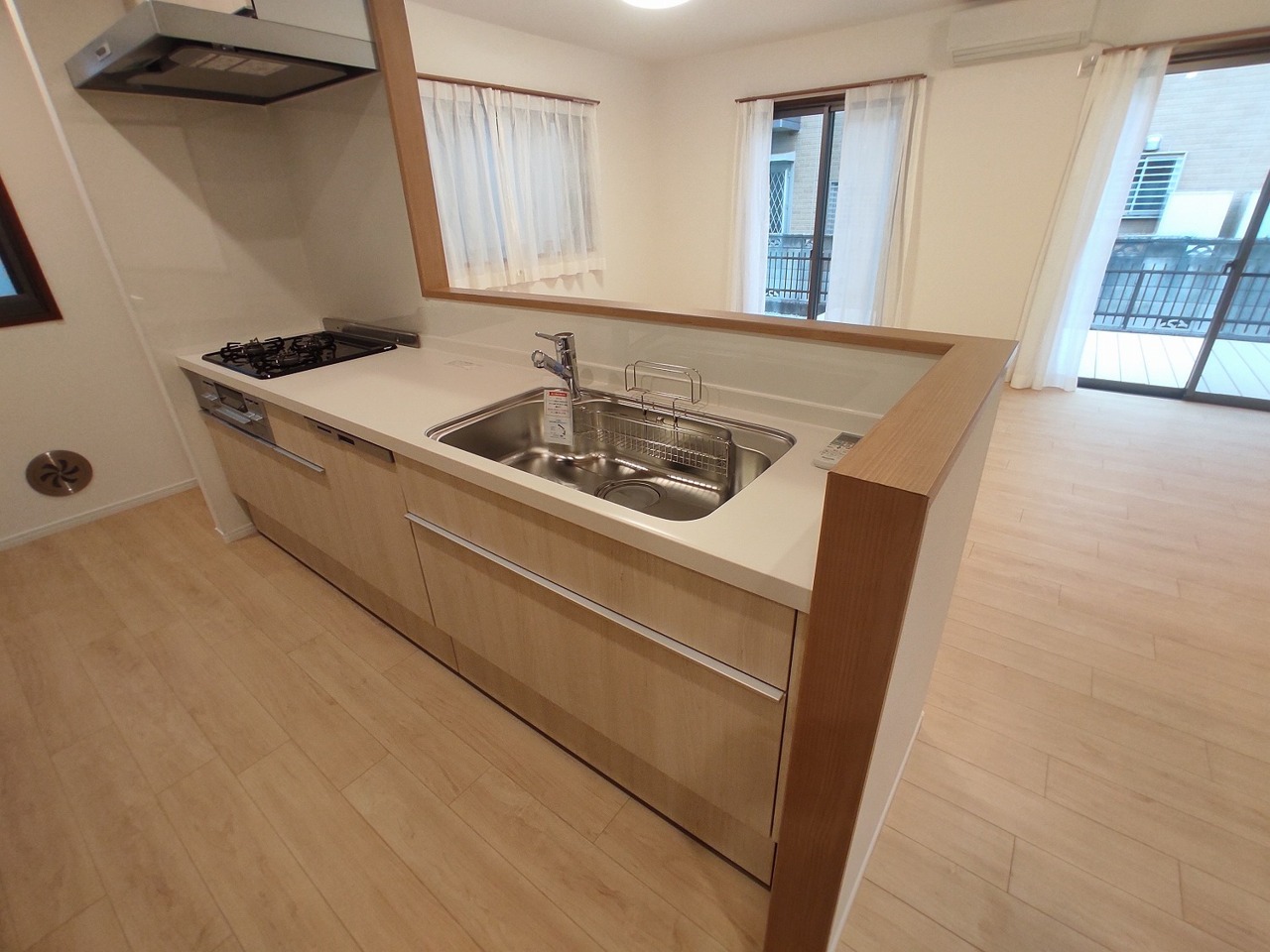 リビングで遊ぶお子様を見守りながらお料理ができる、対面キッチン。
