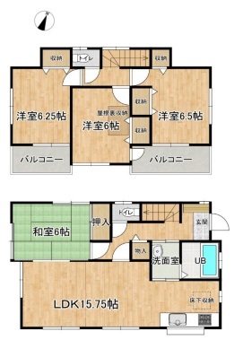 | 間取 | 4LDK (LDK15.75帖、和室6帖、洋室6.5帖、洋室6.25帖、洋室6帖) | ||