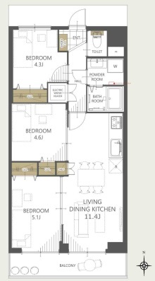 | 間取 | 3LDK (LDK11.4帖、洋室5.1帖、洋室4.6帖、洋室4.3帖) | ||