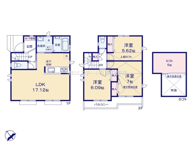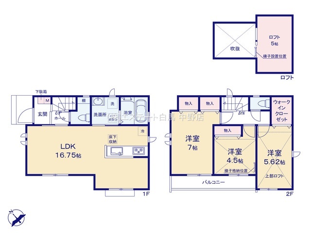 - カウンターキッチン、ロフト・吹抜けのある開放的な空間設計。周辺は生活施設の整った閑静な住宅地。