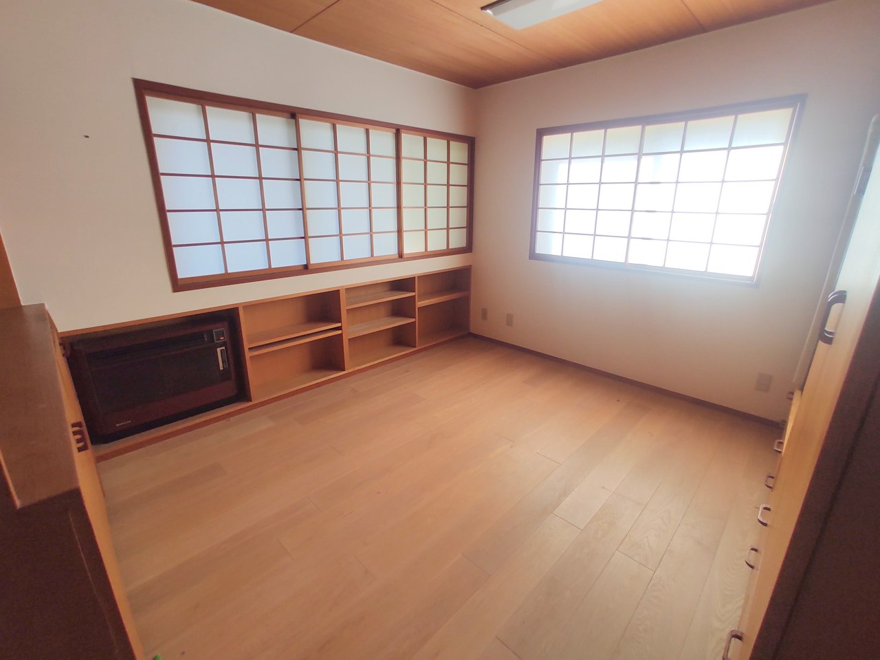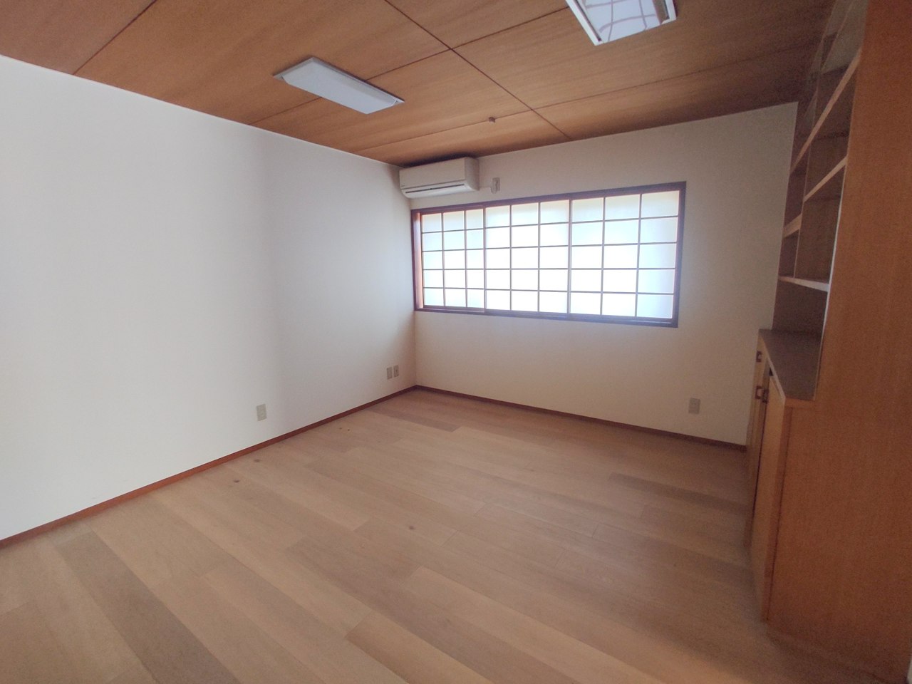 大きめのベッドを置いても、まだゆとりが持てる大きさ。8帖の主寝室。