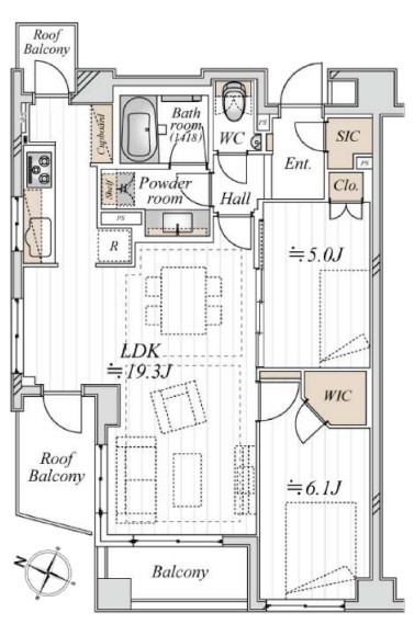 | 間取 | 2LDK (LDK19.3帖、洋室6.1帖、洋室5.0帖) | ||
