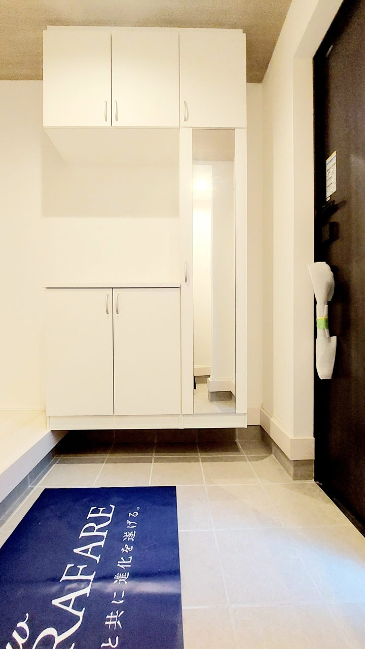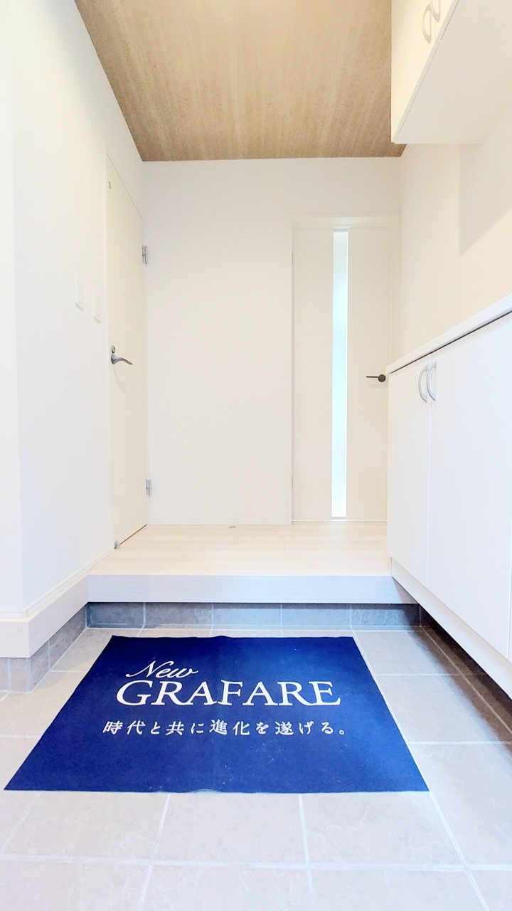 明るく開放的な玄関、靴の脱ぎ履きもしやすく、収納も豊富でご家族皆様の靴をスッキリ収納できます。