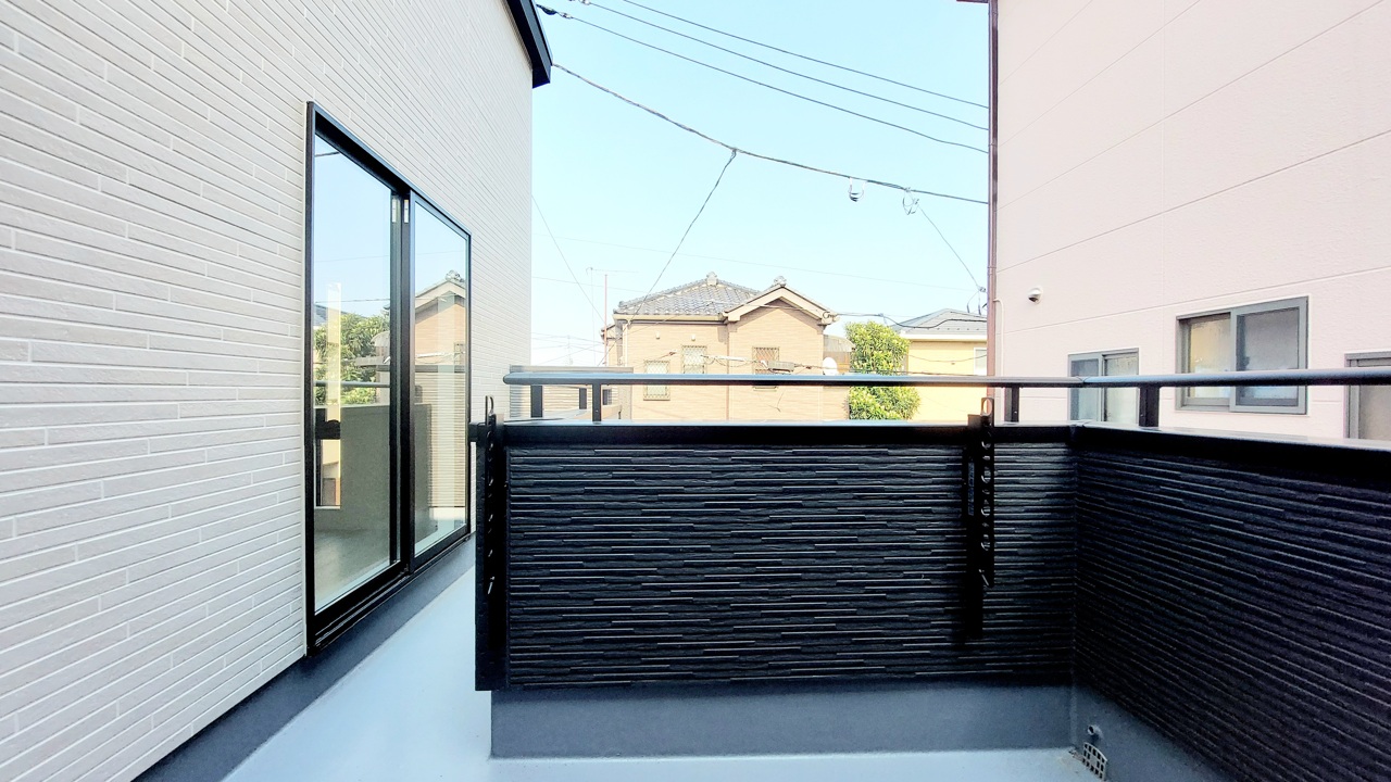 陽ざしが差込む明るいバルコニー。奥行きのあるバルコニーはお洗濯時に助かります。