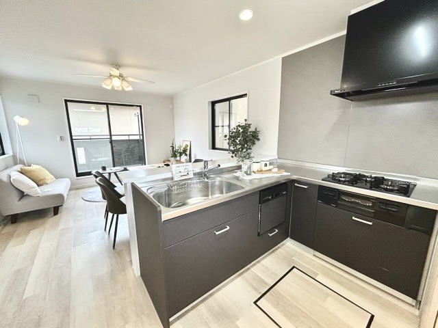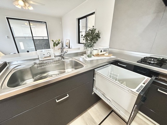 明るい光が降り注ぐ窓があるキッチンはお料理を作る時の気持ちもいつもより明るくなります。近くに窓があるので換気もしやすいですね。