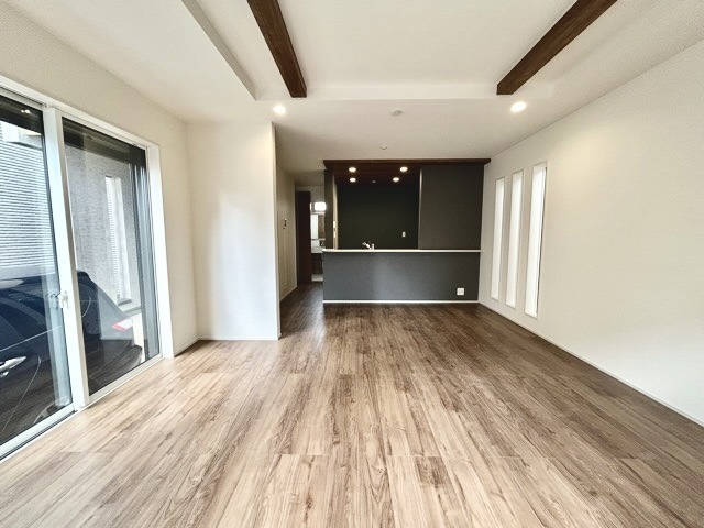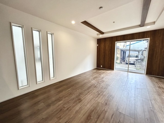 大きな開口部から明るい光が差し込む、日中の室内の明るさがこの部屋の魅力です。