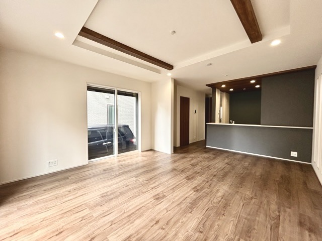 大きな開口部から明るい光が差し込むリビング。日中の室内の明るさがこの部屋の魅力です。