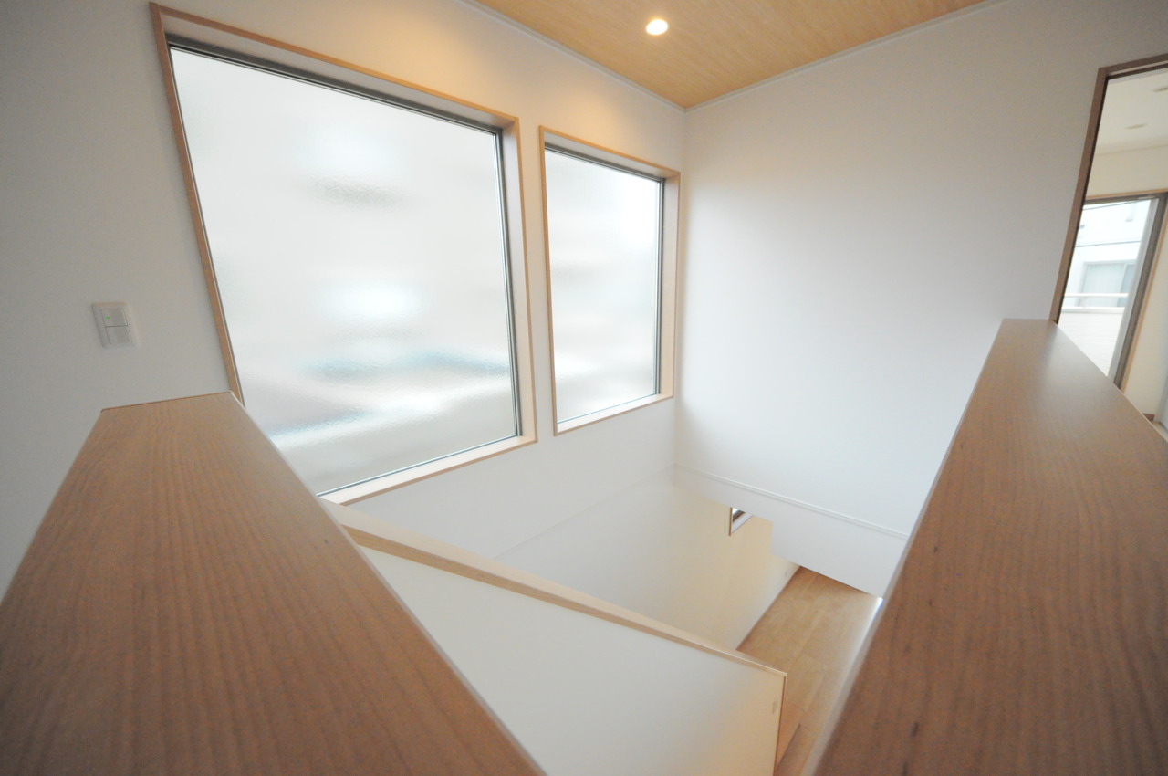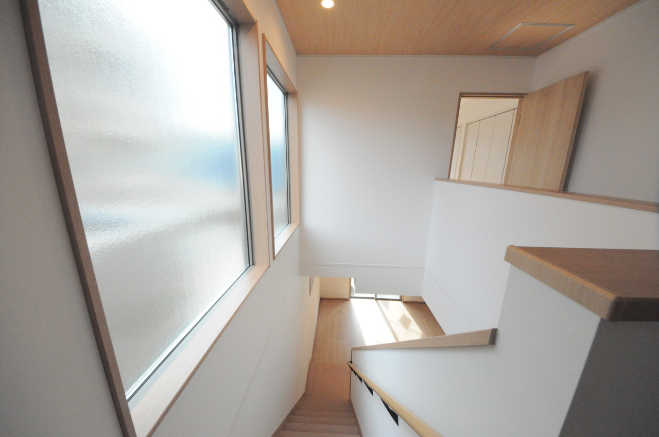 階段上部には大きな窓もあり、明るい陽ざしが差し込みます。