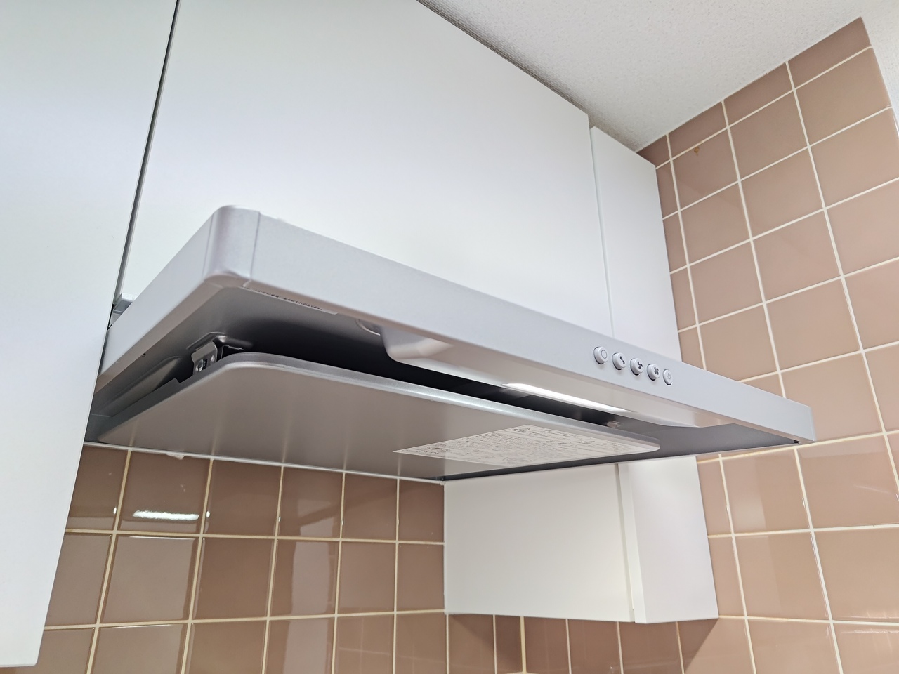 スマートな見た目のレンジフード。 場合に応じて換気速度が調節できます。