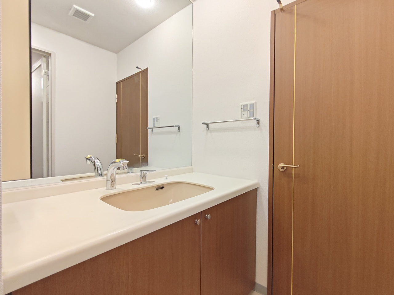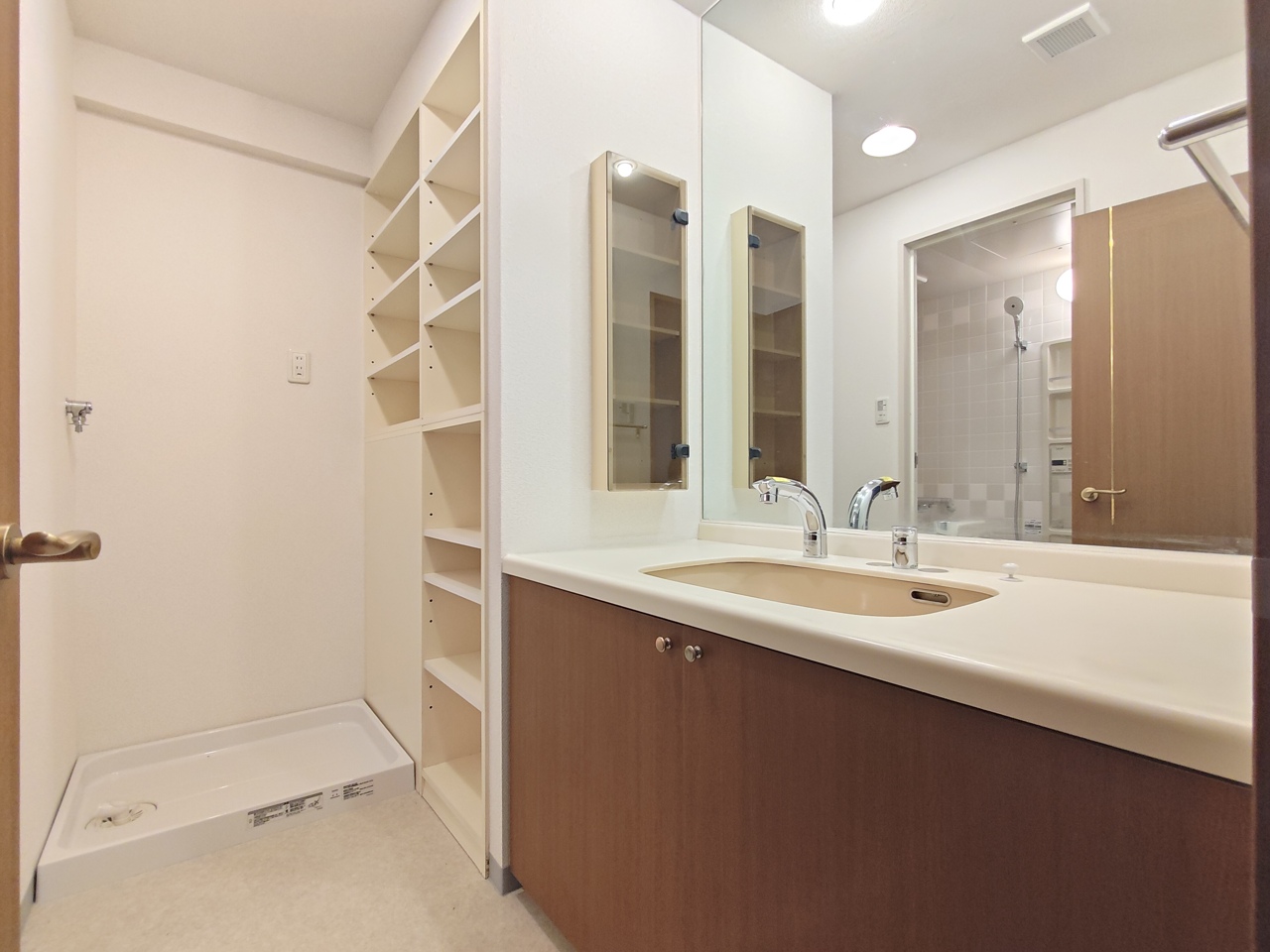 大きな鏡の洗面脱衣室。